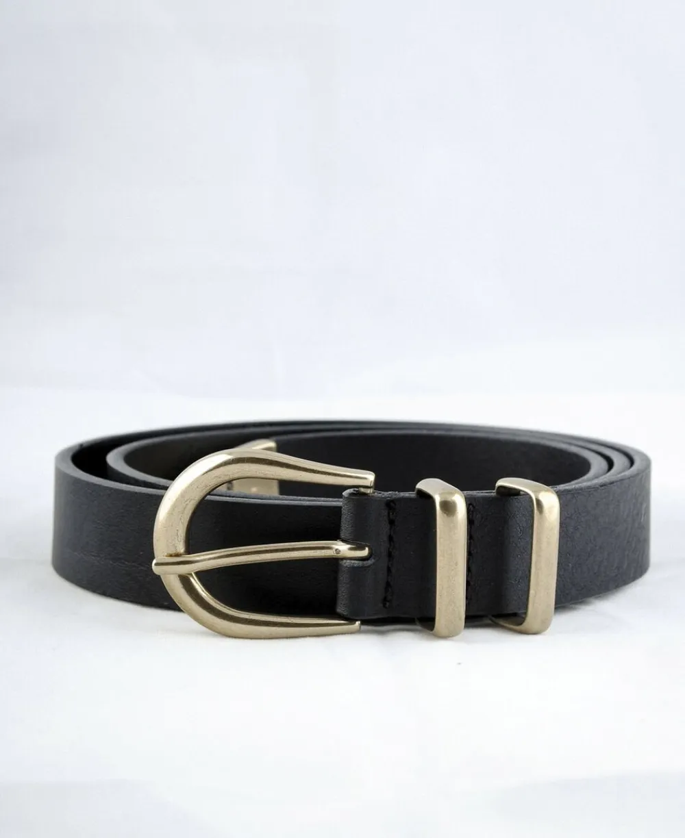 Et detaljerigt bælte i 25 mm bredde. Bæltet er designet med spænde og mathende spids og loop i messinglook. Remmen er produceret i ét lags vegetabilsk garvet læder fra Italien. Læderet er certificeret af Leather Working Group.
