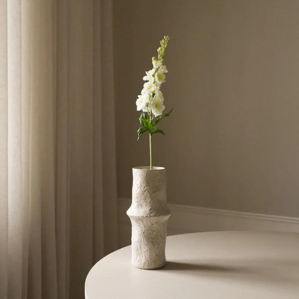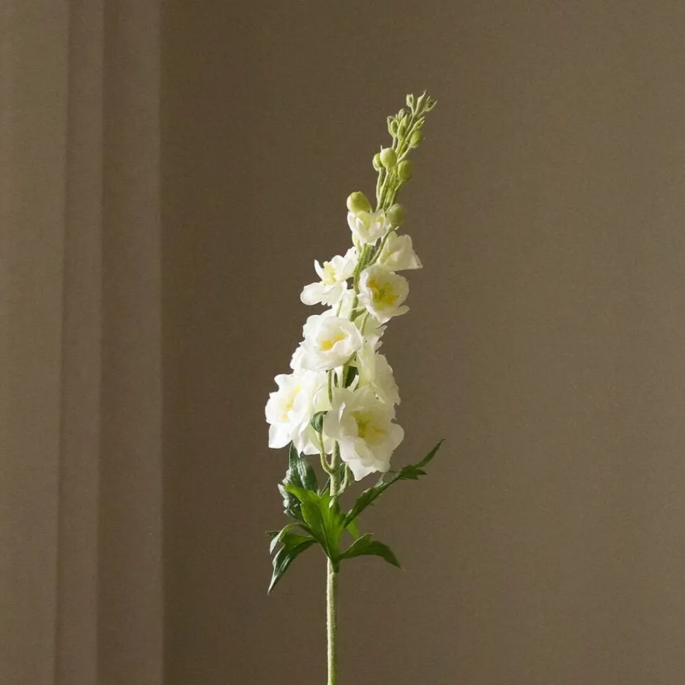Delphiniums er kendt for deres tårnhøje spir af kronblade, og vores kunstige fortolkning indfanger denne majestætiske skønhed i livagtige detaljer. Med sin aflange stilk og rigelige blomster er Delphinium det perfekte buketelement, der giver højde og fylde til dine arrangementer. Med sin klassiske grønne og hvide farve blander blomsten sig problemfrit med minimalistiske og skandinaviske Designsensibiliteter, hvilket gør dem til det ideelle valg for dem, der sætter pris på enkelhed og raffinement i deres blomsterindretning.