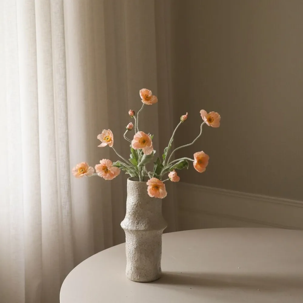 Vores poppyblomster fås i de mest levende og smukke farver. Poppierne harmoniserer perfekt, når de kombineres til en Single buket, hvilket skaber et helt betagende fokuspunkt, der efterlader et varigt indtryk. Vi har også det mere subtile og klassiske valg af vores hvide Poppy, der inkorporerer perfekt i enhver buket. Poppy blomsterhovederne er lavet af stof med et crepe-papirlook. Stænglerne og bladene er dækket af trichomes for at genskabe udseendet af en naturlig Poppy.