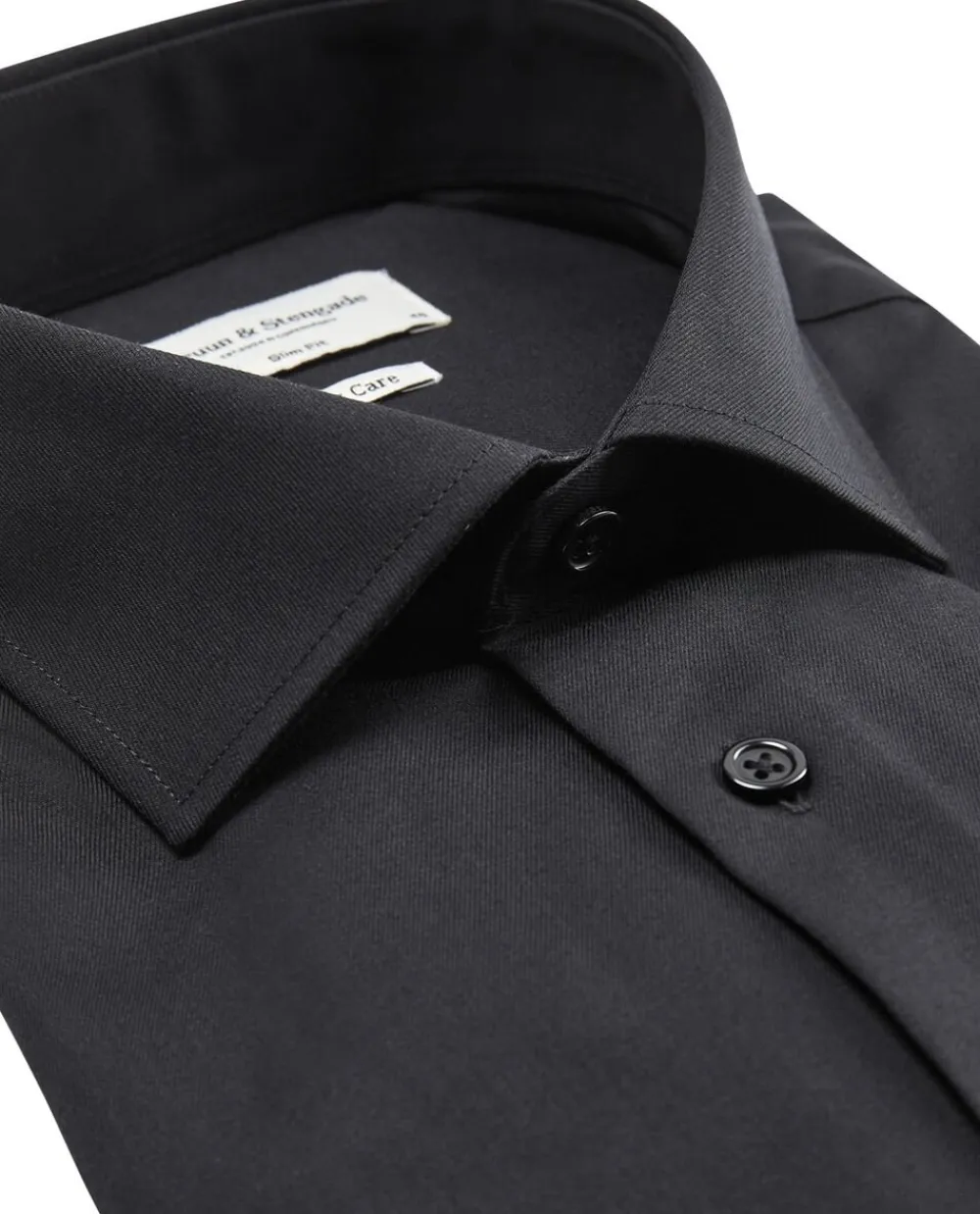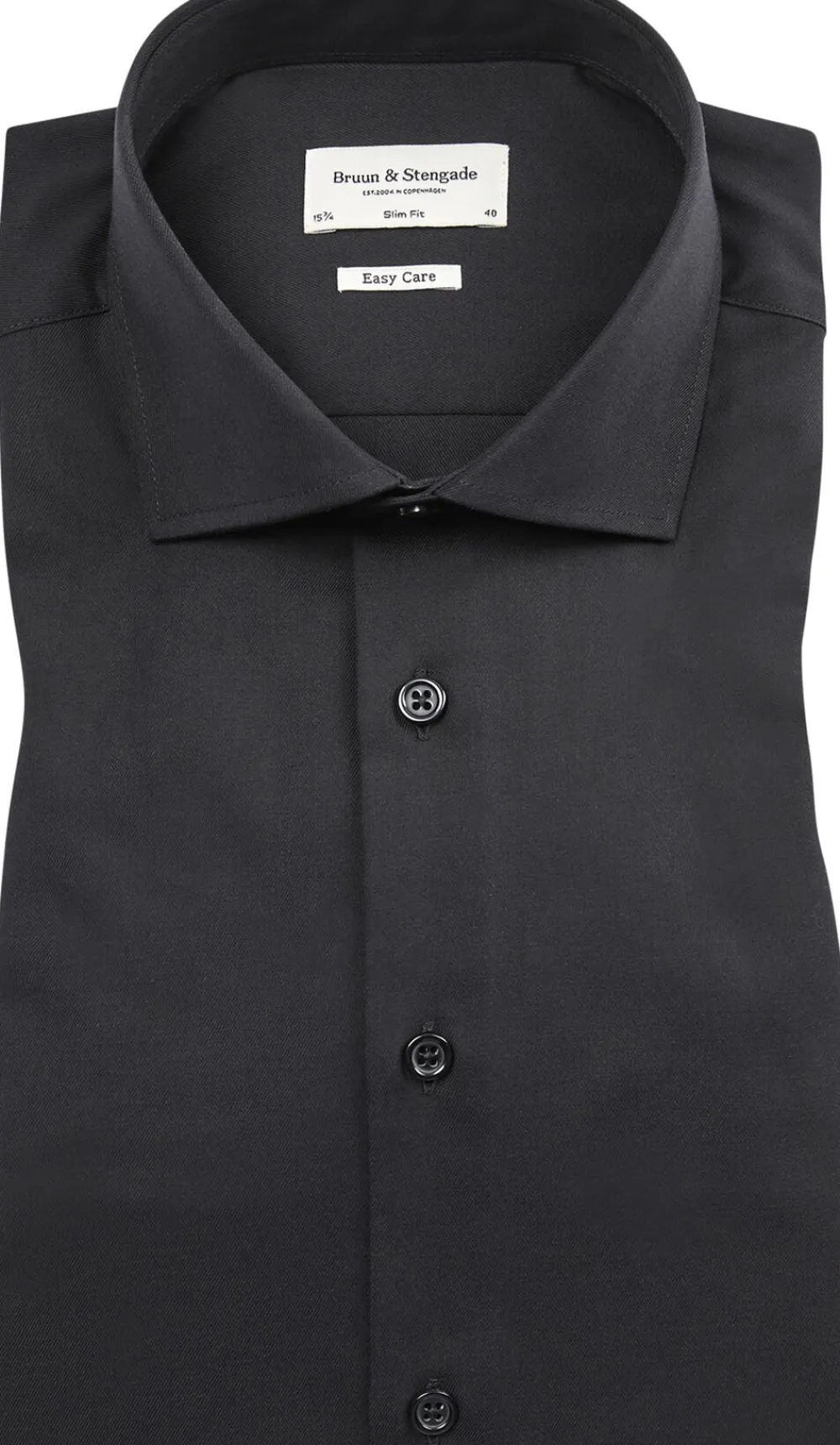 Vores forretningsskjorte med slank pasform er perfekt, hvis du foretrækker en overordnet mere figursyet skjorte. Alle vores forretningsskjorter er fremstillet af 100 % bomuld i almindelig vævning. Denne klassiske Fast skjorte har en bortskåret krave og justerbare manchetter