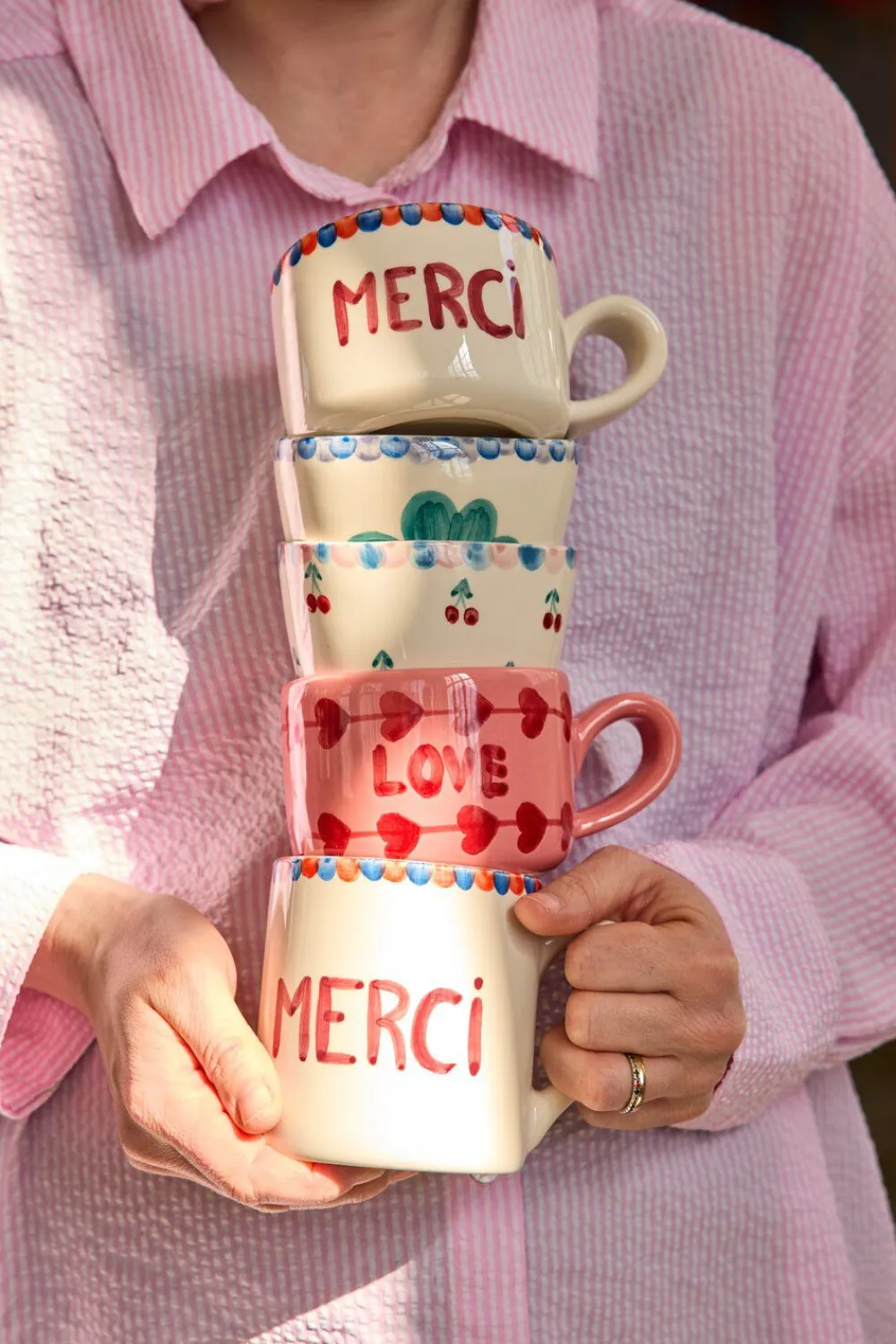 Start dagen med din morgenkaffe i dette ovale krus af keramik med de fineste kirsebærmønster. Koppen er håndmalet af en gruppe skønne portugisiske kvinder, hvilket gør hver enkelt kop helt speciel.