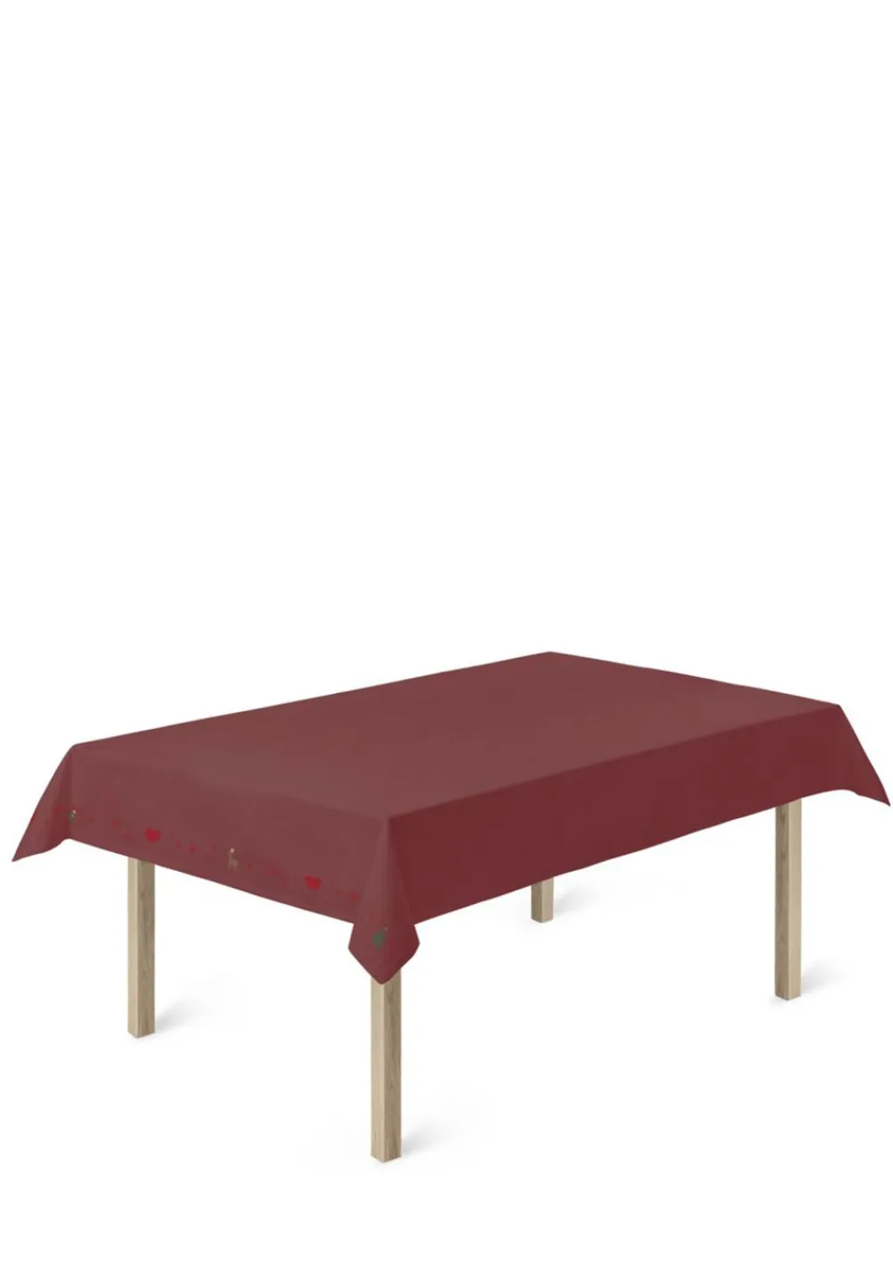 Mærk stemningen med JUNA Christmas Fable magiske juletekstiler til alle rum. Juleeventyr, fantasi og humoristiske dekorationer med masser af cosy kant. Med JUNA Christmas Fable får du en serie af moderne tekstiler med broderede motiver, der både æstetisk og legende forankrer og fornyer julens helt særlige stemning gennem et magisk juleunivers fuld af traditioner, hygge og personlighed. Tænk på en komplet og fuldstændig gennemført julekollektion af certificerede tekstiler til både dit køkken og resten af hjemmet. De dekorative julesokker på trappen fyldt op med dagens kalendergaver. Duftene fra køkkenet, der blander sig med hjertevarme forventninger og kærlige minder om en hyggelig aften i stuen. Den ikoniske juleborddækning, der løfter stemningen og får både børn og voksne til at glædes sammen. Og forestil dig så det hele tilsat nærmest karikerede klassiske broderier, der fortæller endnu flere historier end de tråde, de er syet med. Tryllebunden misteltensmagi, skitseagtige juletræer, nuttede rensdyr, ikoniske julehjerter og fluffy julestjerner. Alle skabt med masser af glimt i øjet i en sød og bevidst naivistisk stil, der ikke kan undgå at sende dit julehumør helt op til den skønneste stjernehimmel. JUNA Christmas Fable er skabt til at samle os omkring bordet, i køkkenet og også trække julestemningen med helt ind på puden, inden vi rammer drømmeland. Fuld af små broderede detaljer. Spækket med de helt store julefølelser. Denne fortryllende JUNA Christmas Fable-dug i en dyb julerød farve er dekoreret med et fantastisk mix af broderede julemotiver ned langs siderne af dugen, så du ikke skjuler de søde dekorationer, når du dækker op med skåle og fade og alle dine andre julefavoritter på midten af bordet. Dugen måler 150×270 cm og kommer i et skønt mix af GRS-certificeret genanvendt bomuld, GRS-certificeret genanvendt polyester og en lille smule viskose, der gør stoffet ekstra lækkert. JUNA Christmas Fable-serien giver dig et bredt udvalg af certificerede juletekstiler til hele hjemmet, hvor du mærker julestemningen i hver eneste tråd, og som du kan glæde dig til at finde frem jul efter jul. En kærlighedserklæring til godt håndværk og dekorativt dansk design vævet sammen af store eventyr og små broderede detaljer skabt til at holde længe og blive elsket endnu længere. (GRS Certified by Control Union, 1026087)