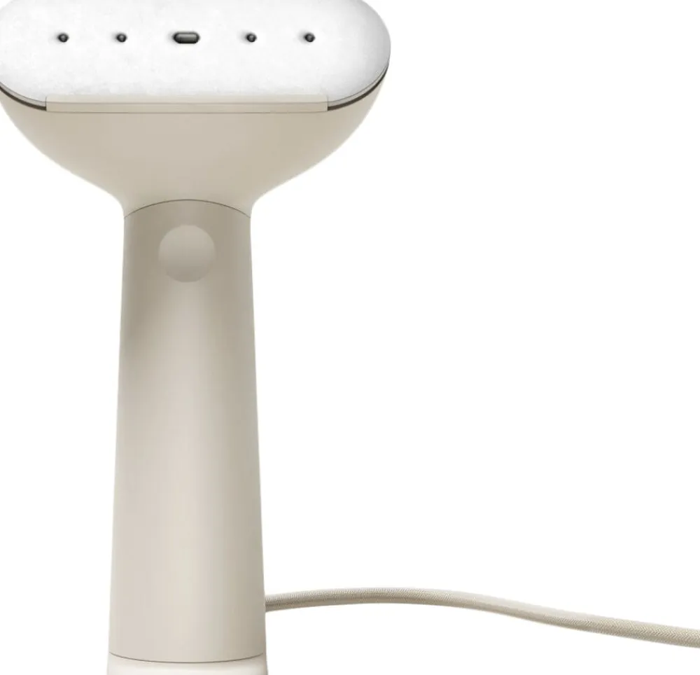 Cirrus No.3 Iron Steamer er lavet af genanvendelig PC-plast og har en beskyttelseskant af genanvendelig PBT-plast. Den har en sandfarvet finish, der tilføjer et strejf af elegance til dit hjem.