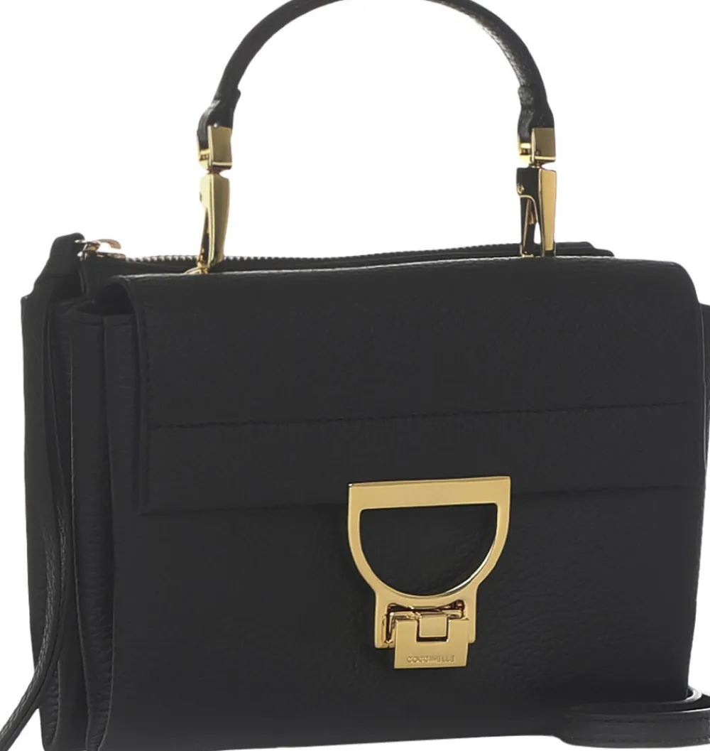 Flot lille taske fra Coccinelle’s ikoniske serie, Arlettis. Tasken er i lækkert, blødt skind. Lukningen er kendetegnet ved omvendt C for Coccinelle. Tasken har et rum med lynlåslukning bagtil på tasken samt et andet rum, som lukkes med spænde. Tasken har aftagelig hank samt skulderem og kan derfor anvendes på mange måder.