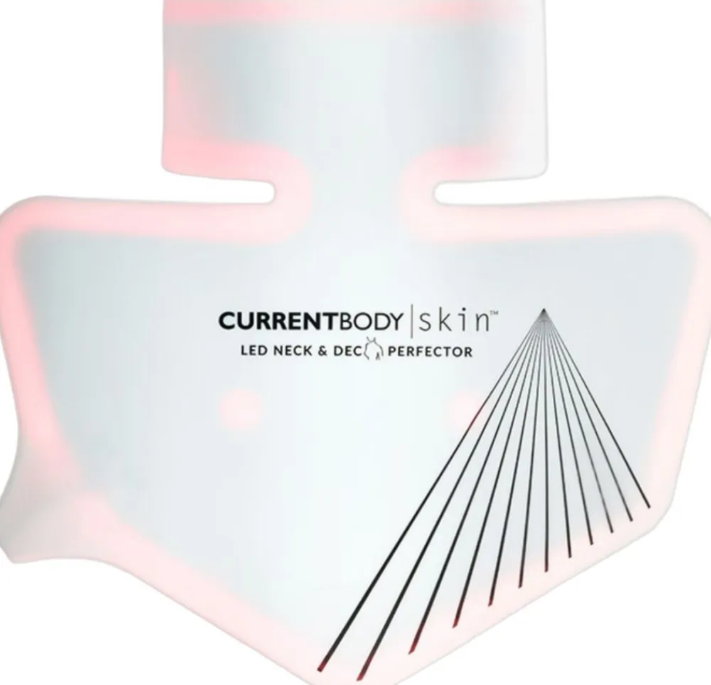 Din hals og bryst udsættes for solen og elementerne lige så meget som dit Ansigt, men får sjældent så meget kærlighed. CurrentBody Hud LED Neck and Dec Perfector er en blød LED-maske af silikone (lys-emitterende diode) til dit bryst og din hals, der bruger 2 former for lys, der har vist sig at bekæmpe rynker, fine linjer og andre tegn på aldring.