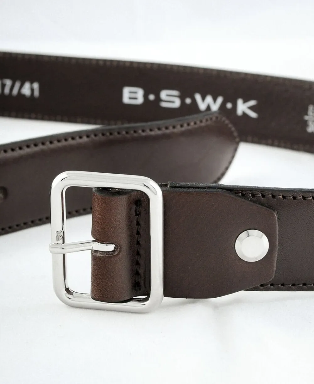 Et raffineret bælte med smalt helspænde. Bæltet er produceret i Danmark i to lag LWG-certificeret narvlæder og kommer med kraftige stikninger langs kanterne på bæltet.