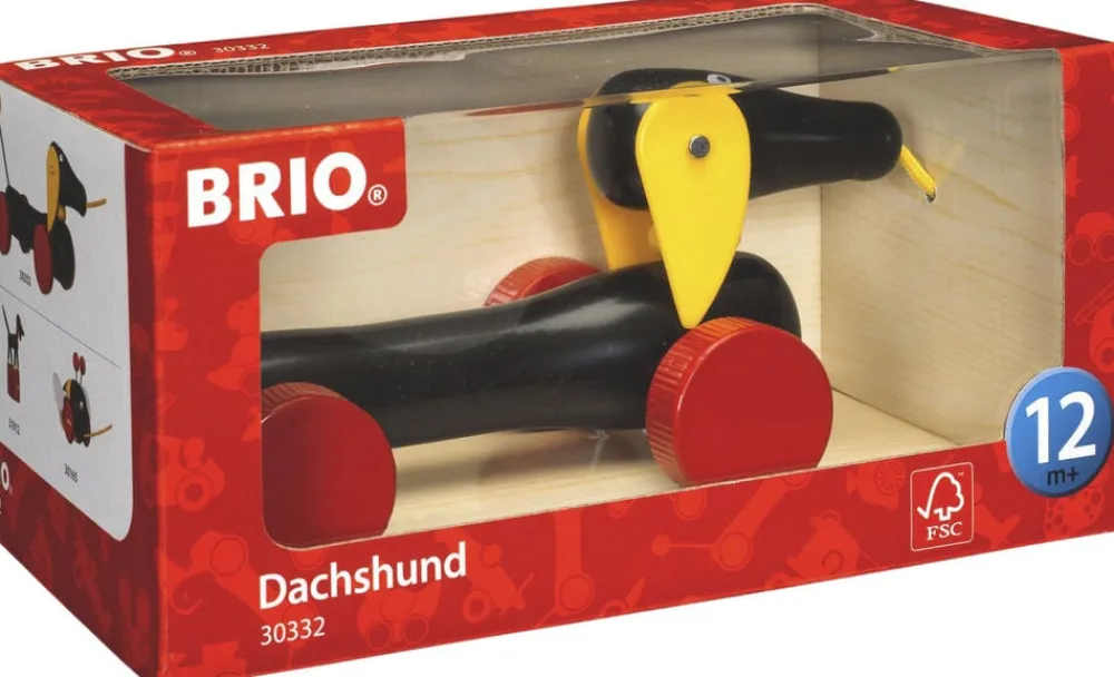 Dette elskede og klassiske trækdyr har eksisteret siden 1958 Den klassiske gravhund i træ, som børnene elsker at trække efter sig! Træhunden bevæger hovedet, halen og ørene. når barnet trækker den efter sig! Længde 20 cm Fra 12 måneder