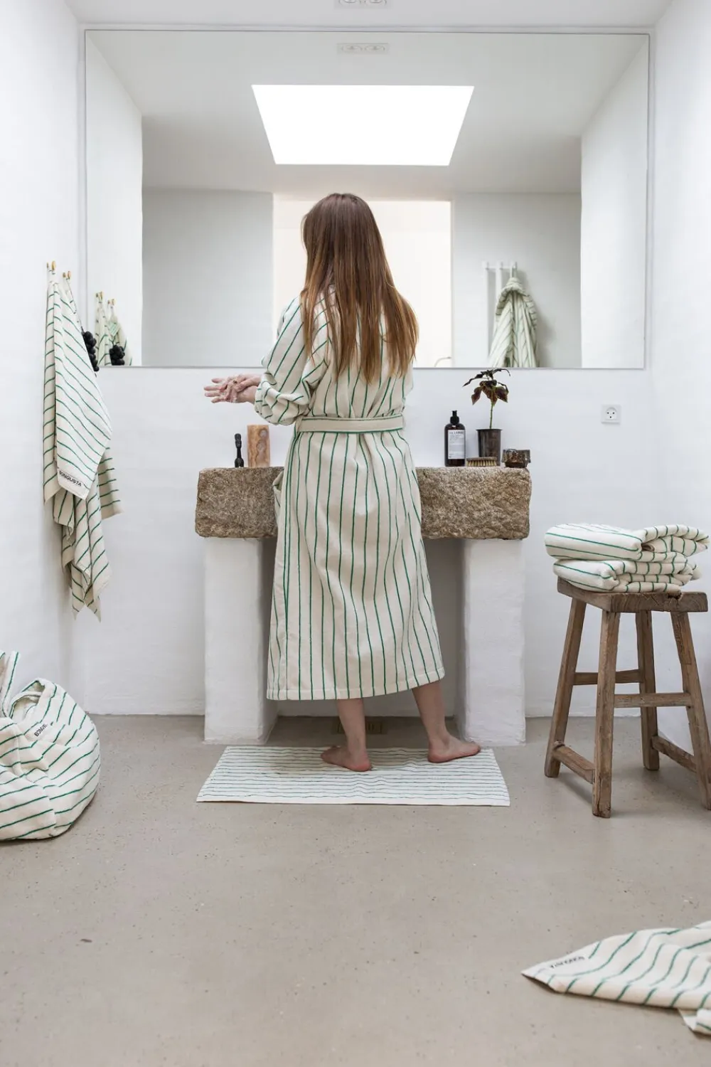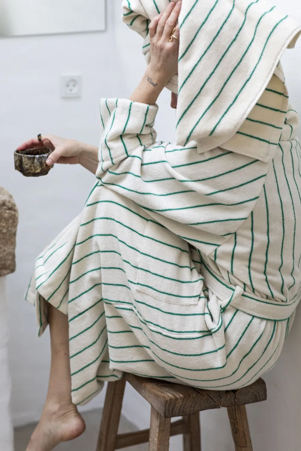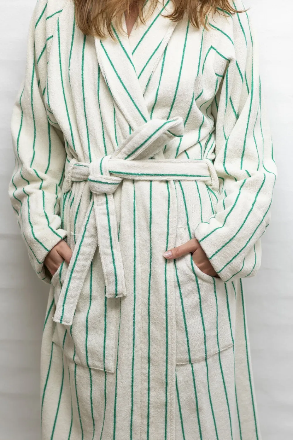 Giv dig selv et blødt kram med den luksuriøse Naram badekåbe. Badekåben har en generøs pasform og giver god dækning – perfekt til når du kommer op af havet, poolen eller ud af badet. Naram badekåben har et klassisk, men moderne design med fine farver og striber. Badekåben kommer med sjalkrave, åben front, bæltelukning og to rummelige lommer – perfekt til afslappede morgener eller bare til hygge i sofaen. Naram badekåben er OEKO-TEX® certificeret og lavet af 100 % kæmmet bomuld vævet i en 385 gsm-kvalitet som giver en høj absorberingsevne. Den specielle kæmmeteknik polerer bomuldsfibrene, så de opnår glans og en silkeblød fornemmelse ved hver brug. Fås i to størrelser: S/M og L/XL. Mål fra nakken bagpå til bundsøm: S/M = 122 cm og L/XL = 138 cm. Hvis du er højere end 176 cm eller foretrækker et oversize look, anbefaler vi, at du vælger en størrelse L/XL.