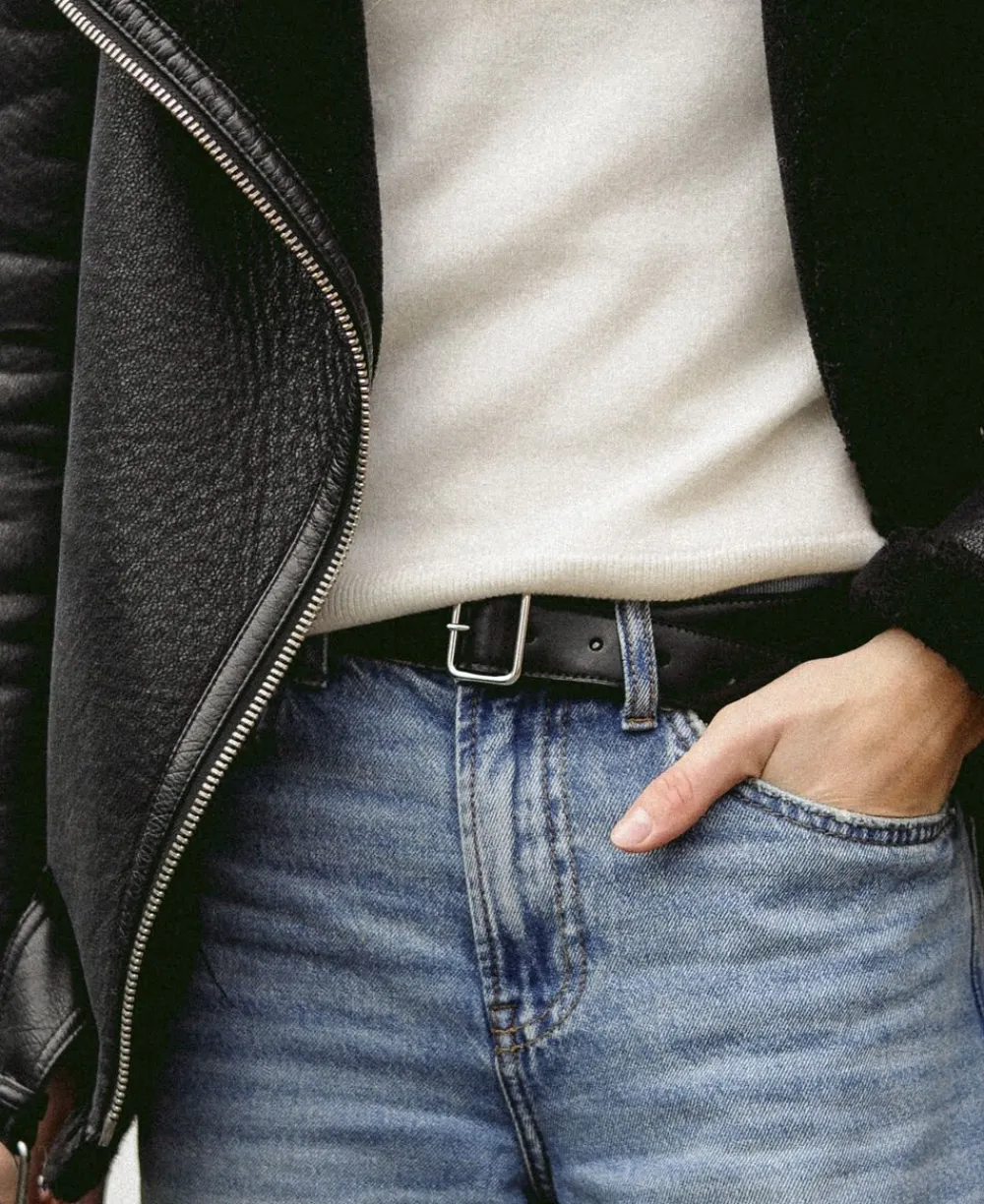Et raffineret bælte med smalt helspænde. Bæltet er produceret i Danmark i to lag LWG-certificeret narvlæder og kommer med kraftige stikninger langs kanterne på bæltet.