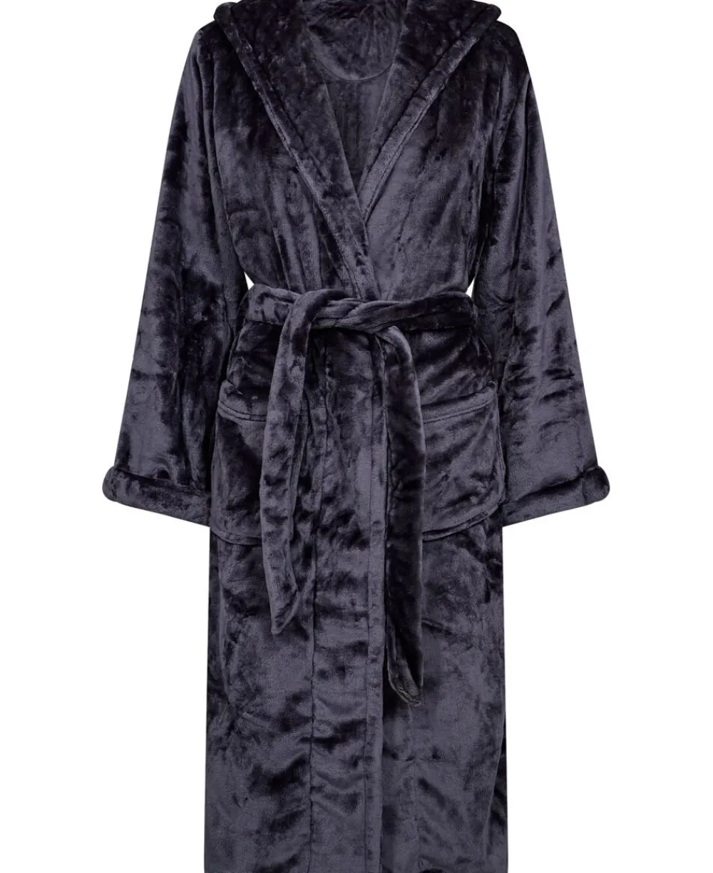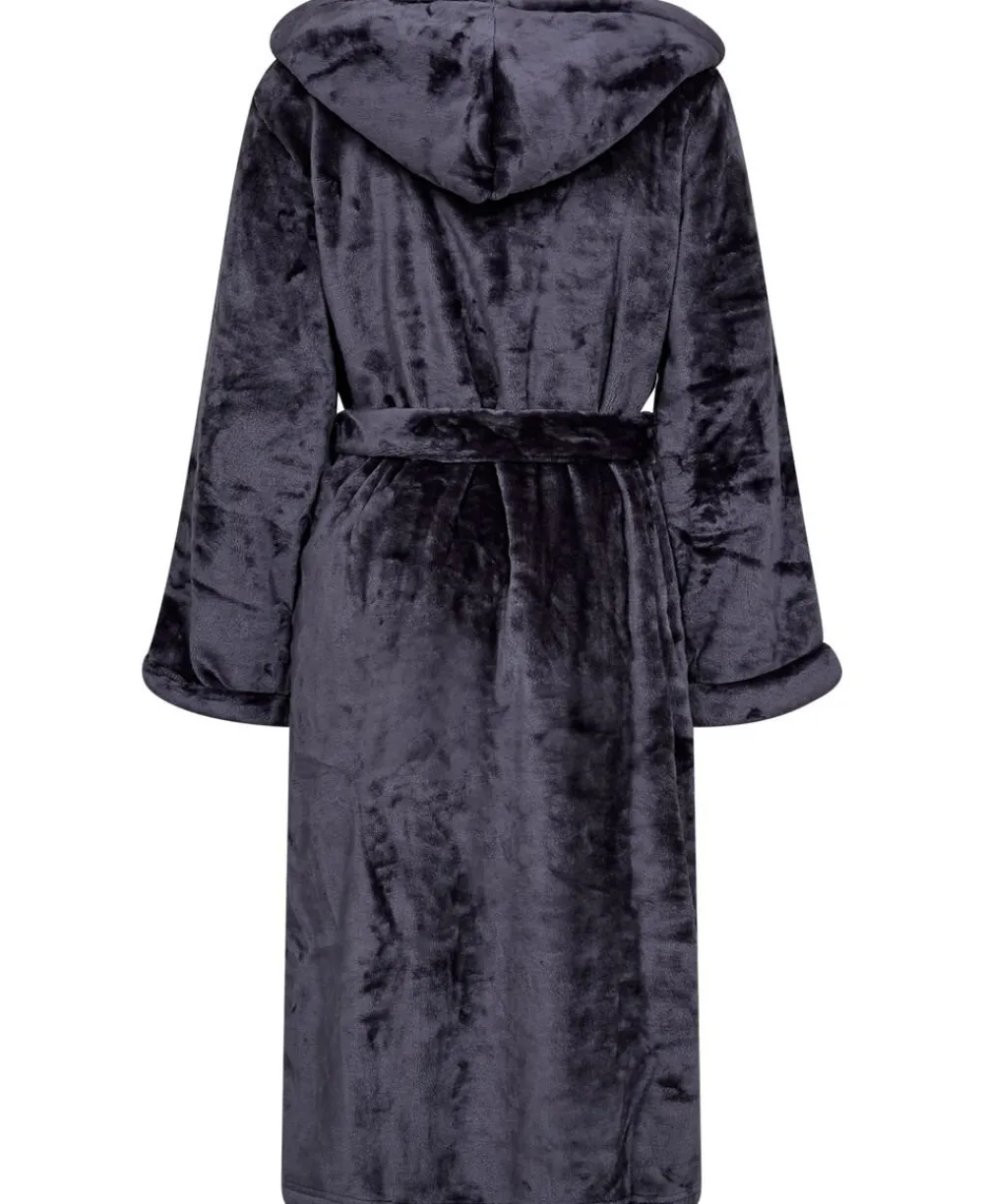 Badekåbe fra Decoy i den blødeste velourkvalitet. Badekåben er enkel i modellen med et aftageligt bindebånd i taljen, lange ærmer med opsmøg, en bred hætte og kravekant, frontlommer samt et indvendigt bindebånd, der sikrer en god komfort.