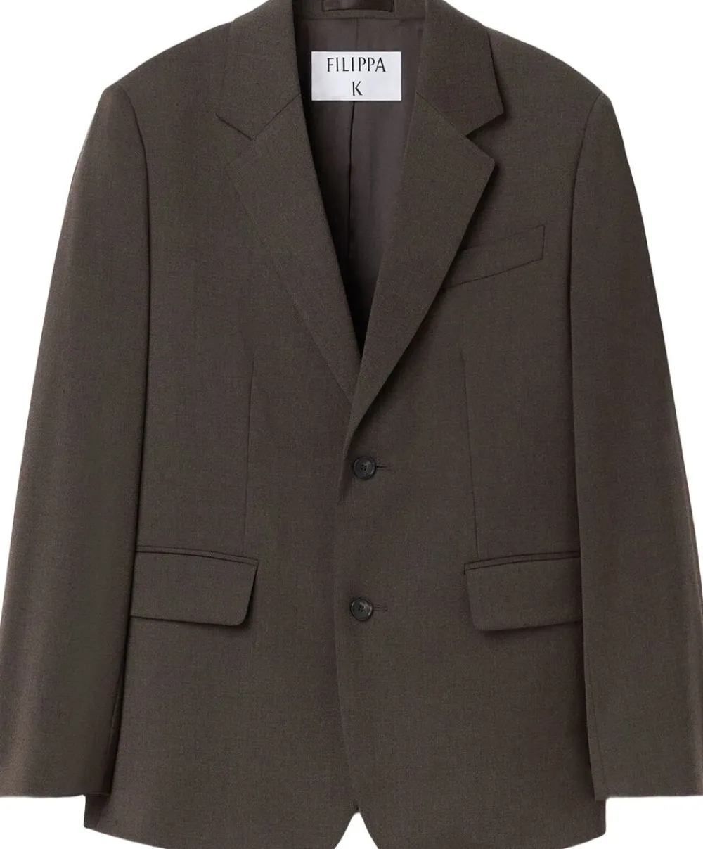 Single bryst. 2 knapper foran. 4 knapper nederst på ærmerne. Jette flaplommer foran. Indvendig lomme. Midterste ventilation bagpå. Fuldt forede dobbelte folder og 2 knapper. Monogramknapper med t-ærmestolpeBagstykke med 2 læg. Buet nederste kant.