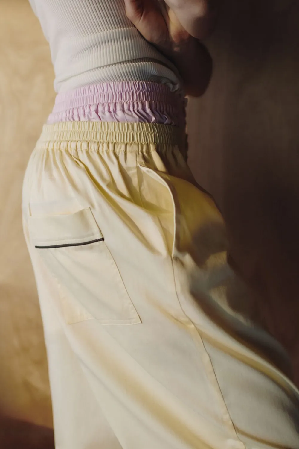 Outline Pyjama Collection er designet til HAY af den danske designer Tilde Bjerregaard og er en ny kollektion af nattøj, der fokuserer på kvalitet og opmærksomhed på håndværk. Outline kombinerer ryddelige linjer og kuraterede farver med en kontrastkant for at skabe en raffineret udgave af en uundværlig hverdagsting. Outline Pyjama Collection er fremstillet i draperet økologisk bomuld, der føles blødt og glat mod Hud, og består af kort- og langærmede skjorter, shorts, lange bukser og en bæltedragt. Kollektionen er designet med optimal alsidighed i tankerne og fås i to forskellige størrelser, S/M og M/L, hvilket gør den lige velegnet til brug ved sengetid eller til afslapning i komfort i hjemmet. Alle produkter fås i forskellige farver, der er nøje udvalgt for deres evne til at blive båret alene eller sammen.