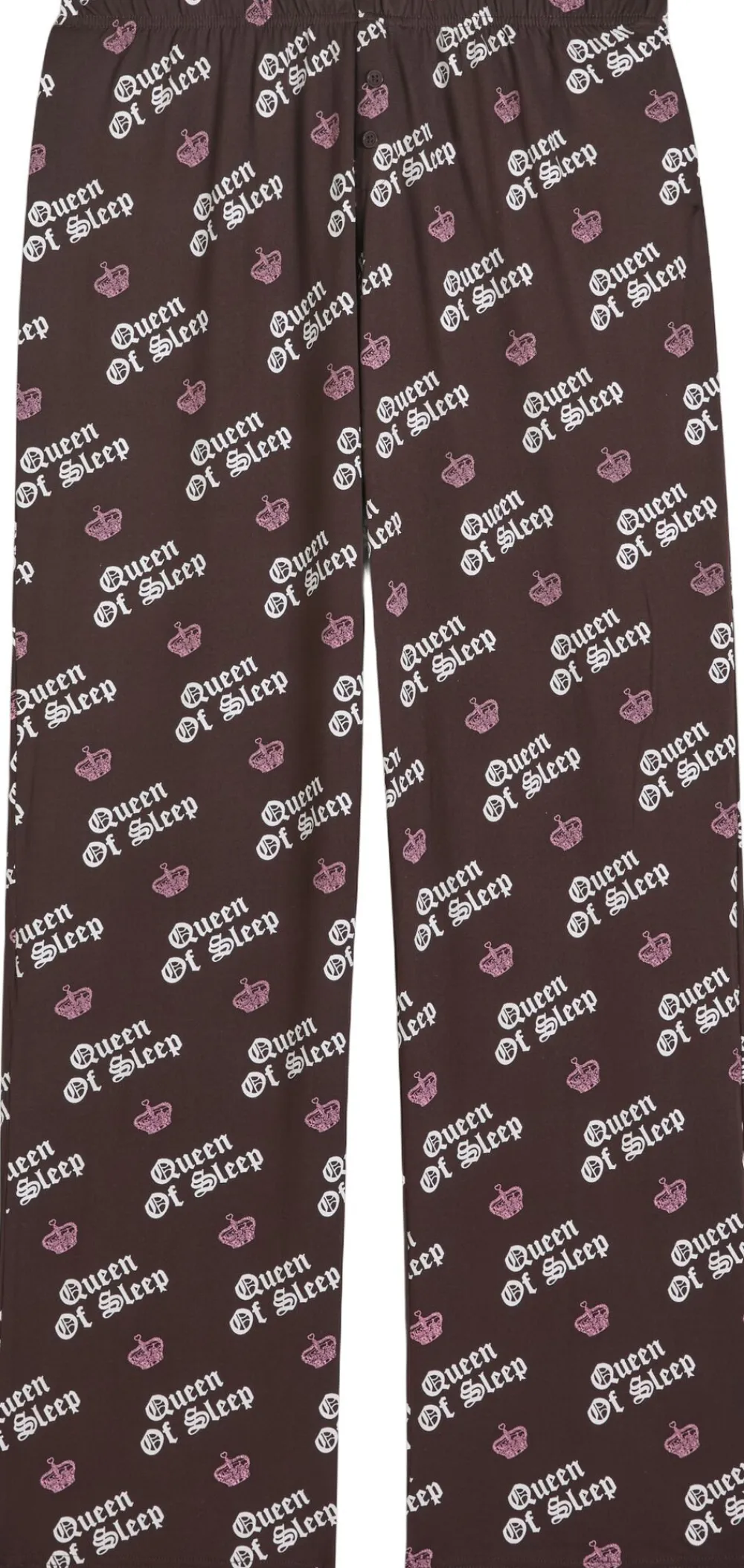 Peached jersey pyjamassæt med øjenmaske. Pyjamasbukser med fuldt slogantryk + langærmet topsæt med Queen of Sleep-branding