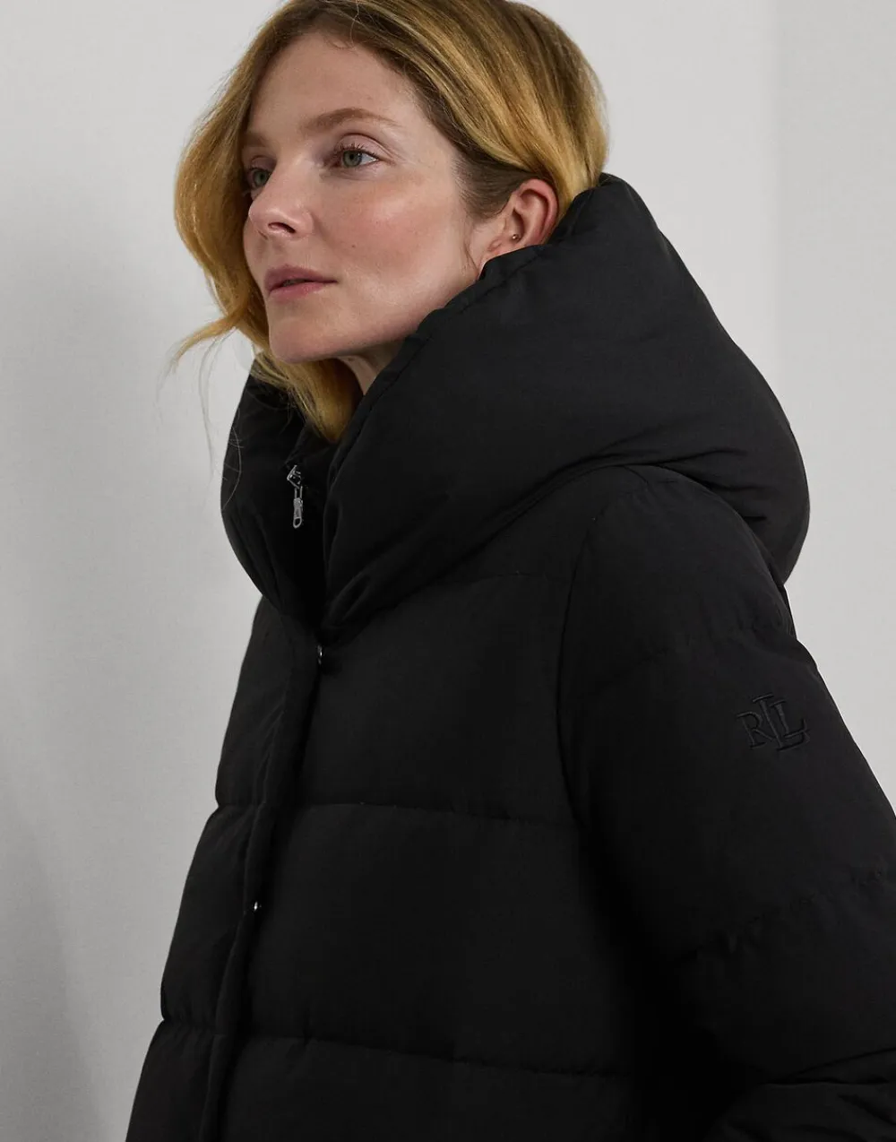 Denne kanalquiltede frakke er dekoreret med signaturindgraverede trykknapper og er udstyret med en overdimensioneret hætte, en indvendig bib og 450-fyld-ned for at sikre, at du holder dig varm