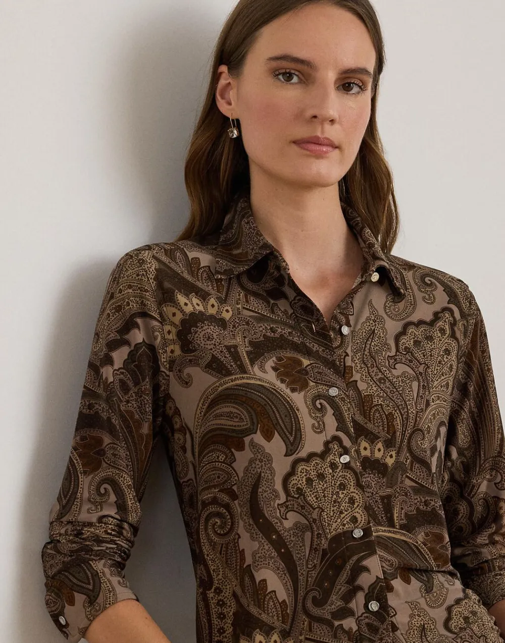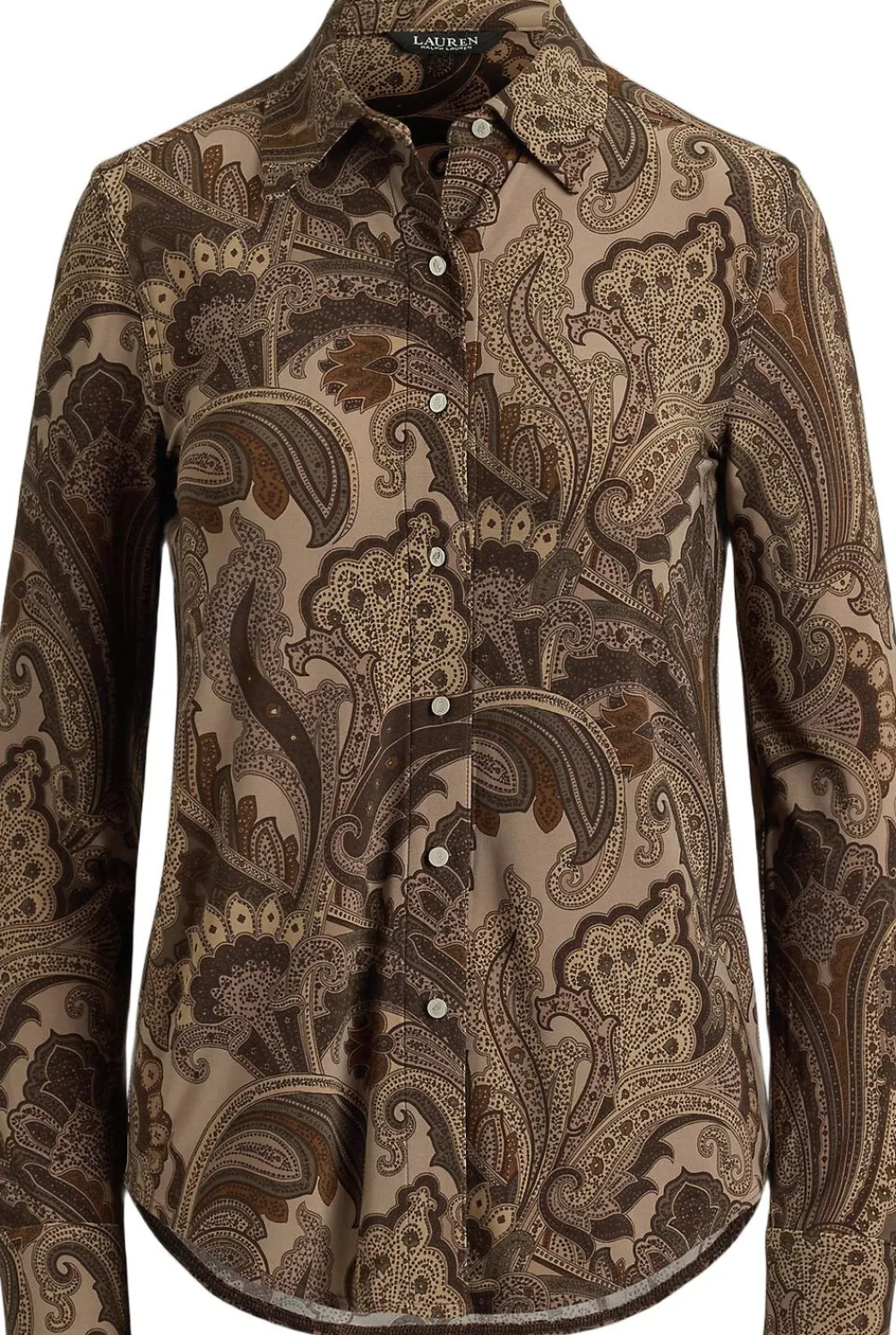 Denne skjorte med knapper er fremstillet i jersey med stræk og har et paisleytryk i sæsonens jordagtige farvepalet