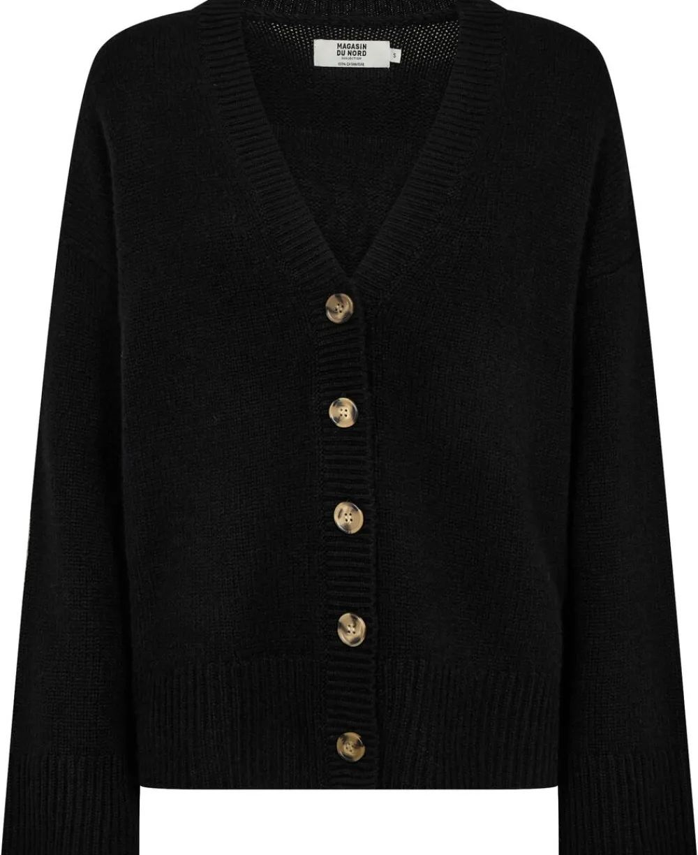 Strikket cardigan fra Magasin du Nord Collection i en blød og kraftig kvalitet af 100% kashmir med OEKO-TEX® STANDARD 100-certificering. Cardiganen er enkel i modellen med V-udskæring, ribkanter, hornknapper på fronten samt lange ærmer med ‘drop shoulders’, der understreger den lige silhuet. En casual cardigan i den absolut bedste kvalitet.
