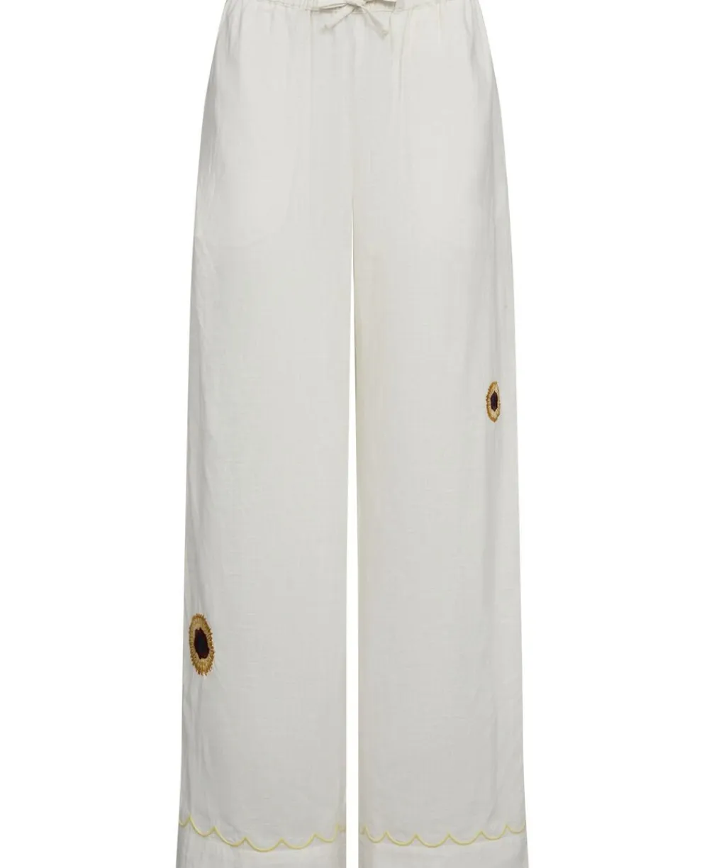 Bukser fra Magasin du Nord Collection i den blødeste kvalitet af 100% økologisk bomuld med GOTS-certificering. Bukserne har de fineste, broderede blomster, elastik og snøre i taljen, sidelommer, en løs pasform samt lige bukseben med elegante piping-detaljer i bunden. Et par skønne bukser i en let kvalitet. Se også de andre fine styles i samme serie.