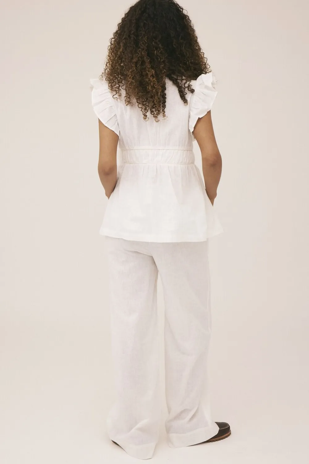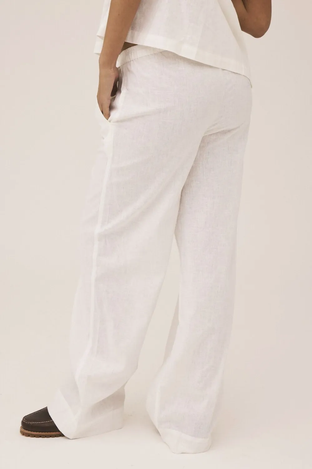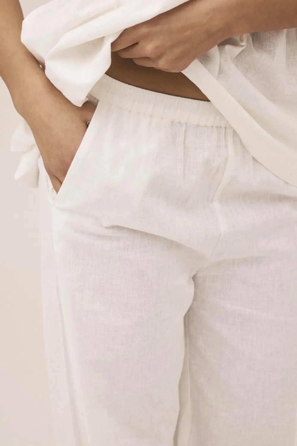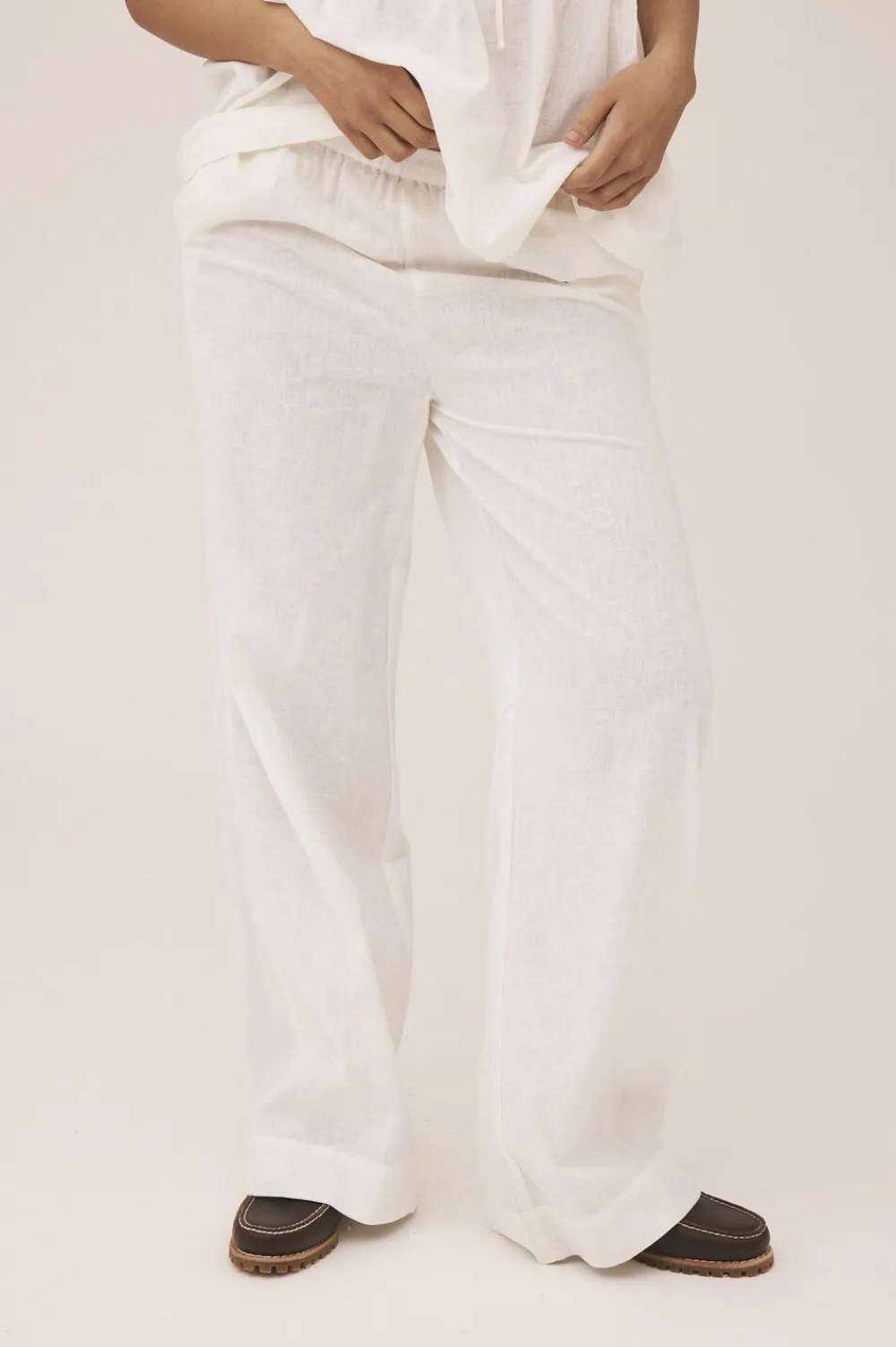 Bukser fra Magasin du Nord Collection i den blødeste kvalitet af bomuld og hør med OEKO-TEX® STANDARD 100-certificering. Bukserne er enkle i modellen med en løs pasform, elastik i taljen, sidelommer samt lige ben. Et par skønne bukser i en lækker kvalitet.
