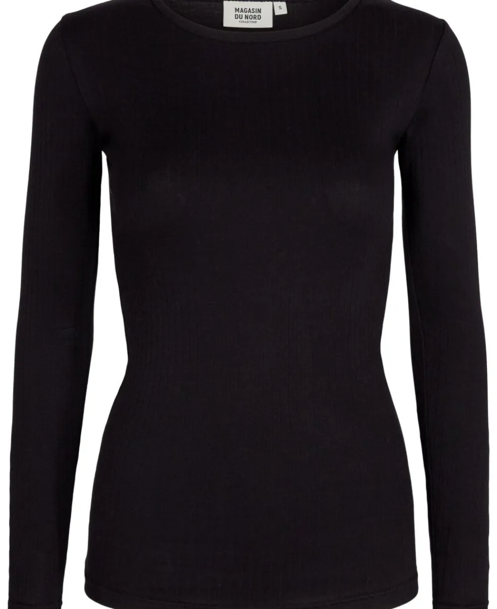 Bluse fra Magasin du Nord Collection i den blødeste kvalitet af 100% økologisk bomuld med GOTS-certificering. Blusen er enkel i modellen med lange ærmer, en smal ribkant langs den runde halsudskæring samt en lækker ribstruktur, der giver blusen en tætsiddende pasform. En skøn bluse i den lækreste kvalitet.