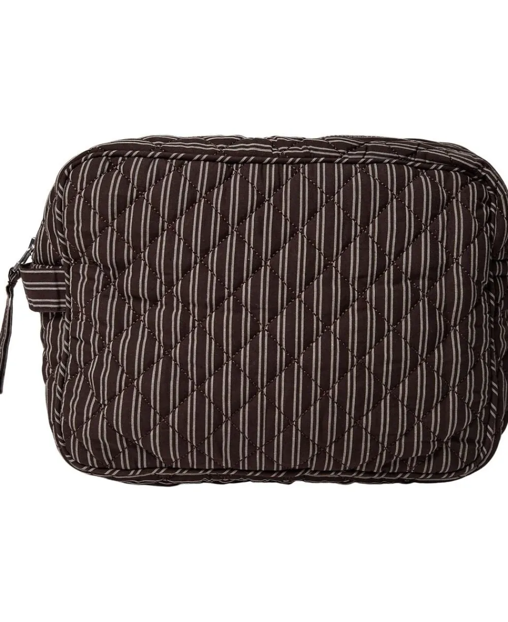 Toilettaske fra Magasin du Nord Collection i den blødeste kvalitet af 80% økologisk bomuld med GOTS-certificering. Toilettasken består af ét stort rum med lynlåslukning samt mindre inderlommer. Derudover har toilettasken fine vatterede syningsdetaljer og et stribet print. En skøn toilettaske i den lækreste kvalitet.