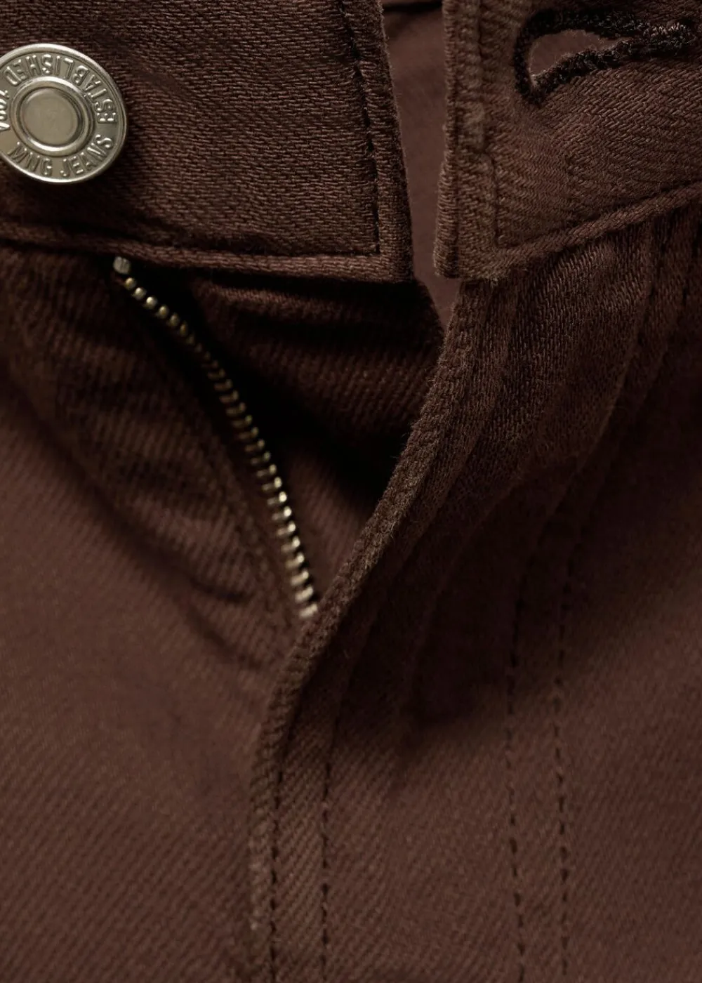 Denim-stil bomuldsstof, kort Design, mellemhøj talje, bæltestropper, jeans med bindelukning, lægdetaljer foran, flosset kant, knap- og lynlåslukning.
