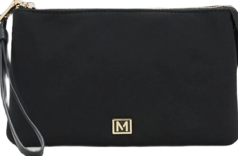 Mellemstørrelse, nylonstof, to inderlommer, lynlåslukning, prægetlogo, indvendig foring.