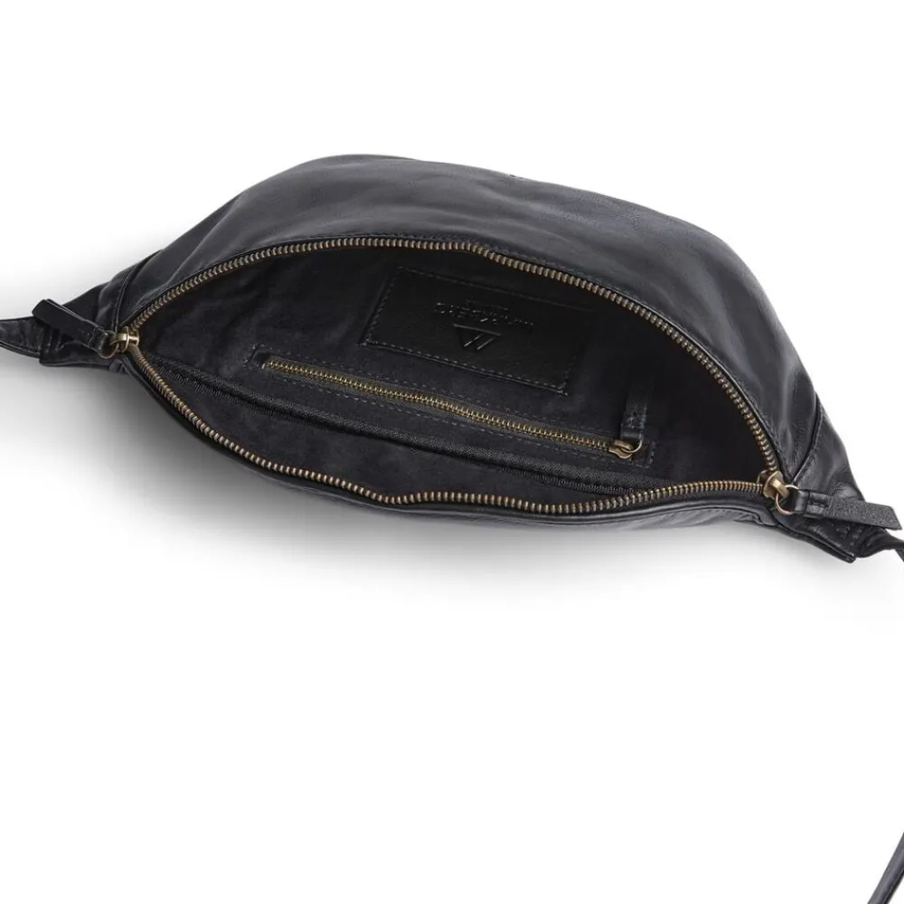 Camden Bum bag i Soft vintage fra Markberg er lavet i smukt blødt kalveskind, med et unikt vintage-udseende. Den vintage finish opnås gennem en omhyggeligt håndlavet voksbehandling, der giver hver taske et rigt, tidløst look. Den har en moderne og funktionel opbygning med en lynlåslomme på fronten og et rummeligt hovedrum, der kan åbnes fra begge sider, hvilket gør det nemt at få fat i dine ejendele. Den indre struktur inkluderer et stort rum samt en lille lynlåslomme på siden til opbevaring af mindre genstande. Den justerbare læderstrop sikrer, at tasken kan tilpasses til din størrelse og stil. Forret er lavet af 100% bomuld, hvilket giver et lækkert og holdbart udtryk. Med målene 16 cm x 34 cm x 8,5 cm er den både kompakt og rummelig, perfekt til daglig brug eller som en trendy accessory.
