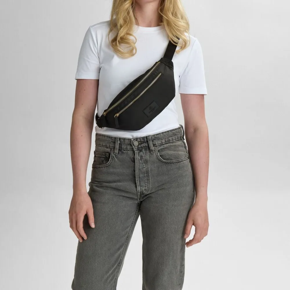 Cargo Bum bag fra Markberg er en praktisk og stilfuld bæltetaske. Tasken er lavet af 100% genanvendt polyester, hvilket gør den til et mere miljøvenligt valg. Den rummelige indvendige opbevaringsplads gør det nemt at organisere dine nødvendigheder, mens den lille lynlåslomme hjælper med at holde mindre genstande sikre og let tilgængelige. På fronten har tasken to lynlåslommer, hvilket giver ekstra plads til opbevaring af småting. Den justerbare strap sikrer, at du kan tilpasse tasken til din ønskede pasform, så den sidder komfortabelt hele dagen. Markberg-logoet på fronten er lavet i vegansk silikone, hvilket viser virksomhedens engagement i at undgå animalske materialer. Taskens for består ligeledes af 100% genanvendt polyester, hvilket yderligere understøtter dens bæredygtige profil. Med målene 13 cm x 31 cm x 8 cm er Cargo Bum bag både kompakt og rummelig, hvilket gør den ideel til daglig brug såvel som til rejser.