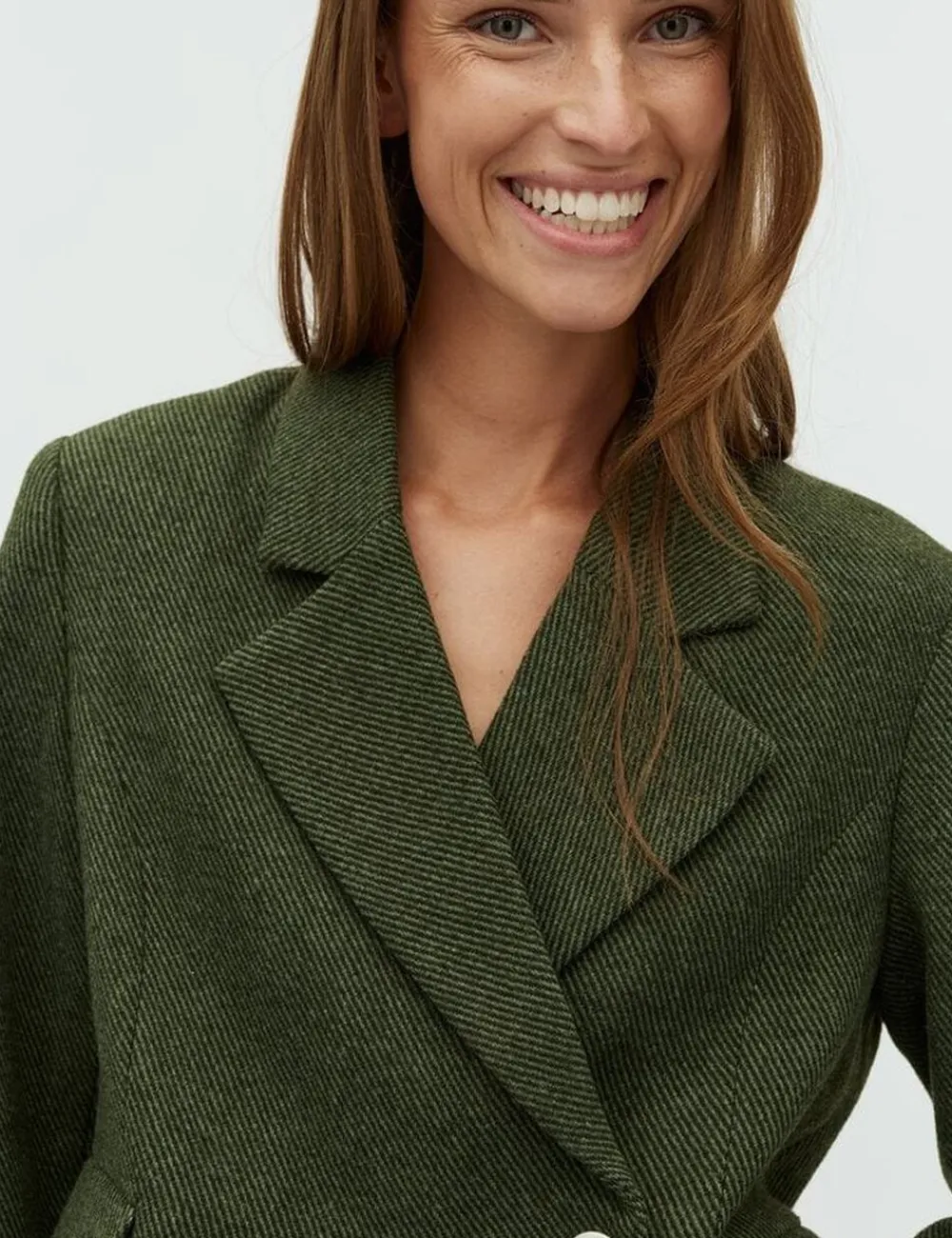 – Detaljer med finesse: Den diskrete knapdetalje tilføjer et unikt præg, der skiller sig ud og gør blazeren til et statement-piece.