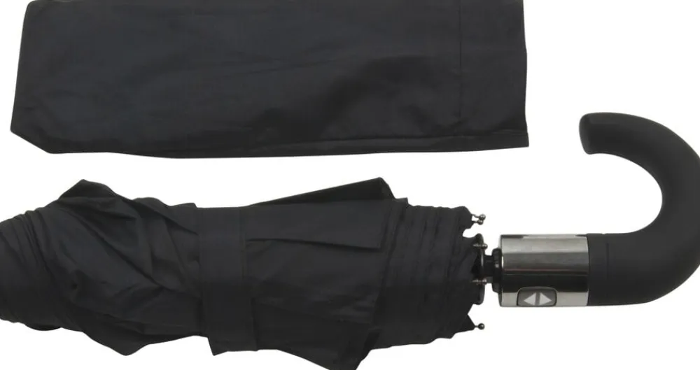Kort taskeparaply med gummihåndtag, der har den egenskab, at den er windproof, så selvom det blæser imens det regner, vil din paraply ikke gå i stykker.