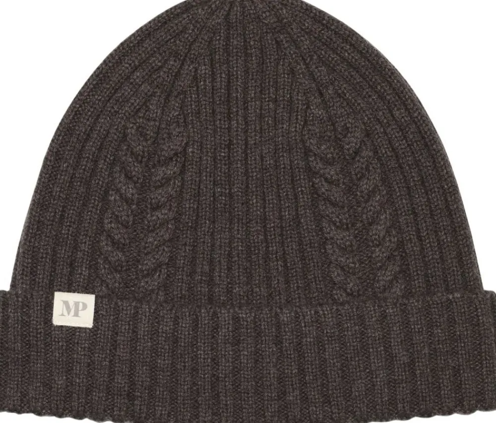 Kabelstrikket beanie med en dekorativ foldekant fra MPwoman. Huen er strikket et lækkert blend af merinould og cashmere, som giver hun enblød og eksklusiv følelse.