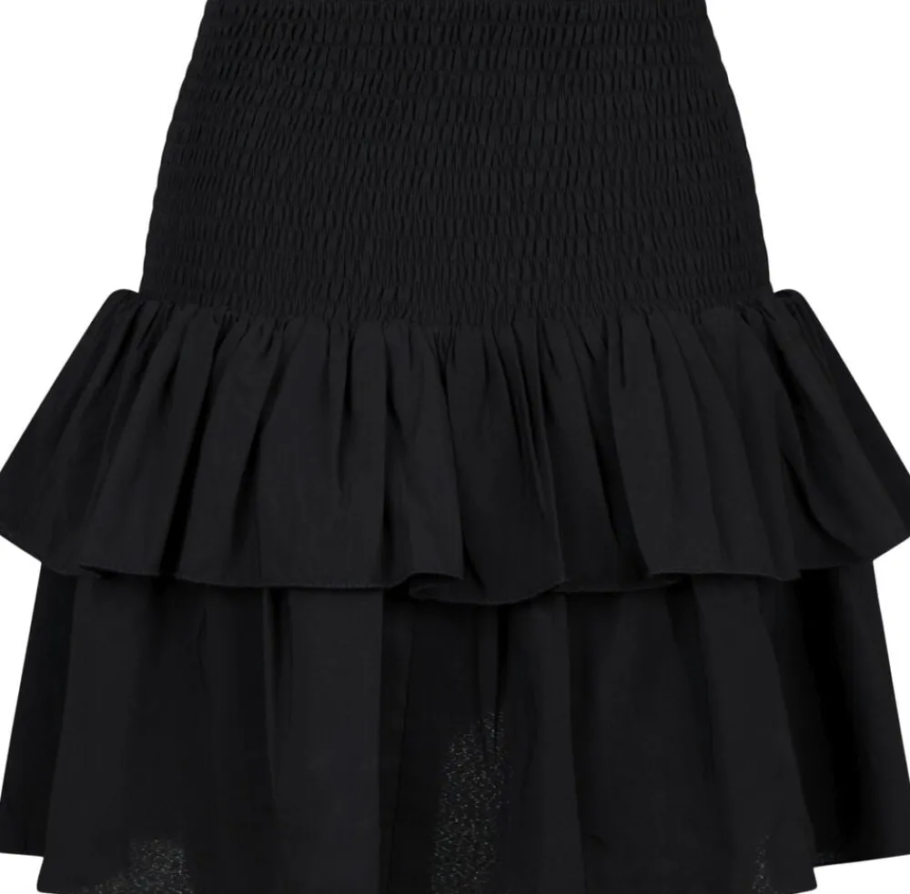 Kort nederdel med to lag flæser og en slids-detalje foran. Nederdelen har et bredt taljestykke i smock, der gør det muligt at placere nederdelen både lav- og højtaljet. Den har en almindelig pasform. Modellen er iført størrelse 36.
