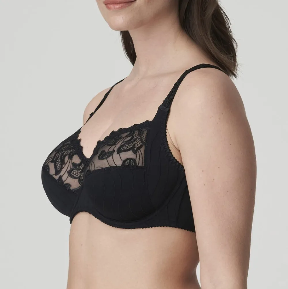 PrimaDonnas bedst solgte full cup bh – og det er ikke uden grund. Deauville er “the go to” bh til dig med den fyldige barm. Dig der har brug for komfort og ikke mindst støtte. Du får en sikkerhed i hverdagen – og din barm bliver smukt centreret og den bliver smukt rundet. Deauville kommer altid i smukke sæson farver, men husk også din basis bh – Deavuille findes i flere basis farver, som her i den elegante sorte. Du bliver afhængig af denne smukke bh – hvor det smukke broderi på skålen går igen på stroppen.