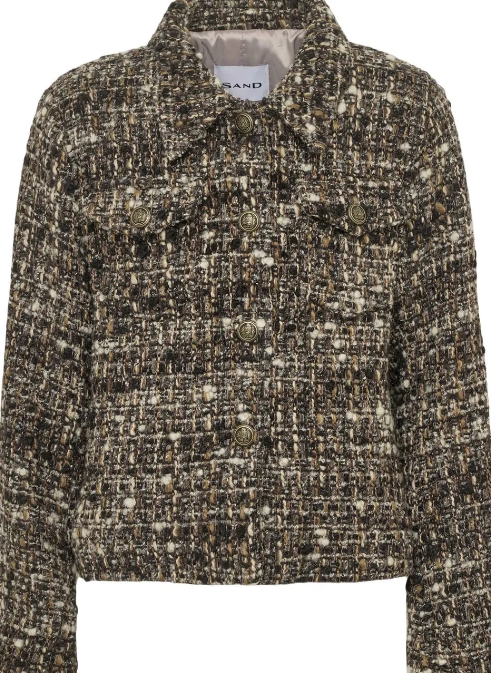Jakke med klassisk krave og to brystlommer med klap. Boxy silhuet. Composition: 29% Uld, 27% Bomuld, 14% Akryl, 3% Andre fibre.