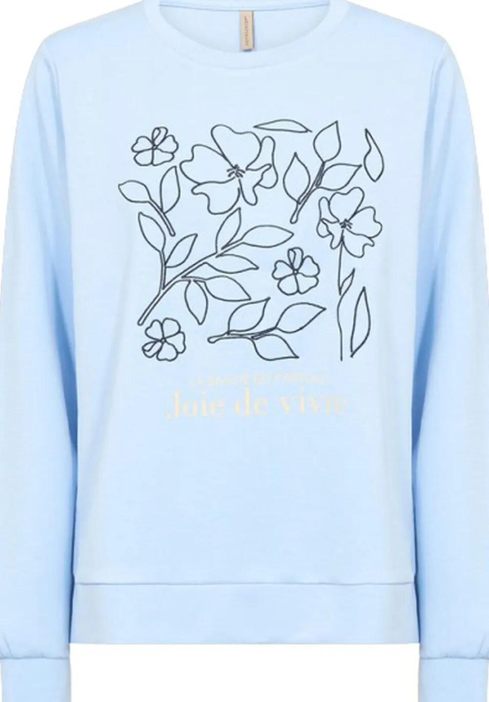 SC-BANU 287 er en sweatshirt fremstillet af 48 % modal, 48 % polyester og 4 % elastan. Den har rund hals, manchetter og et blomsterprint med tekst på forsiden. Sæt den sammen med jeans eller afslappede bukser for et stilfuldt look.
