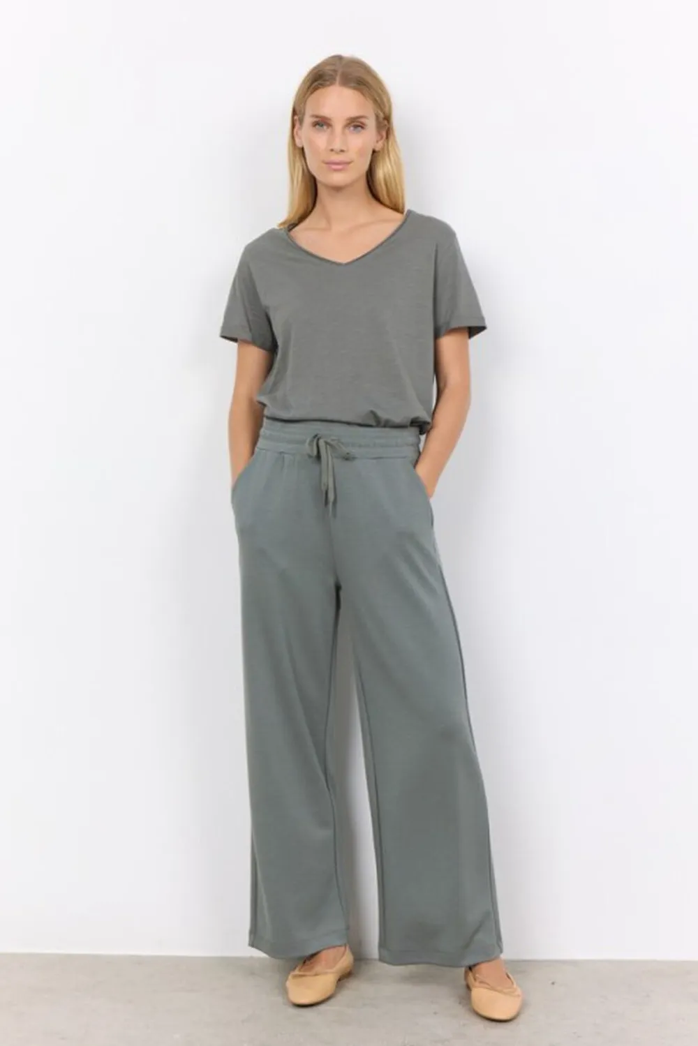 SC-Banu 33 er en komfortabel basis buks i en modal og polyester blanding. Bukserne har elastik og bindebånd i taljen og bede ben for at skabe yderligere behag. Kombiner denne komfortable basis buks med en matchende overdel for et komfortabelt outfit.