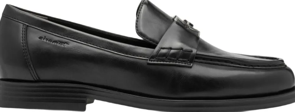 Loafer i polido på en tynd glat sål. Stadig fleksibel. Et gun metal spænde på bæltet over vristen. Touch it effekt i dæksålen