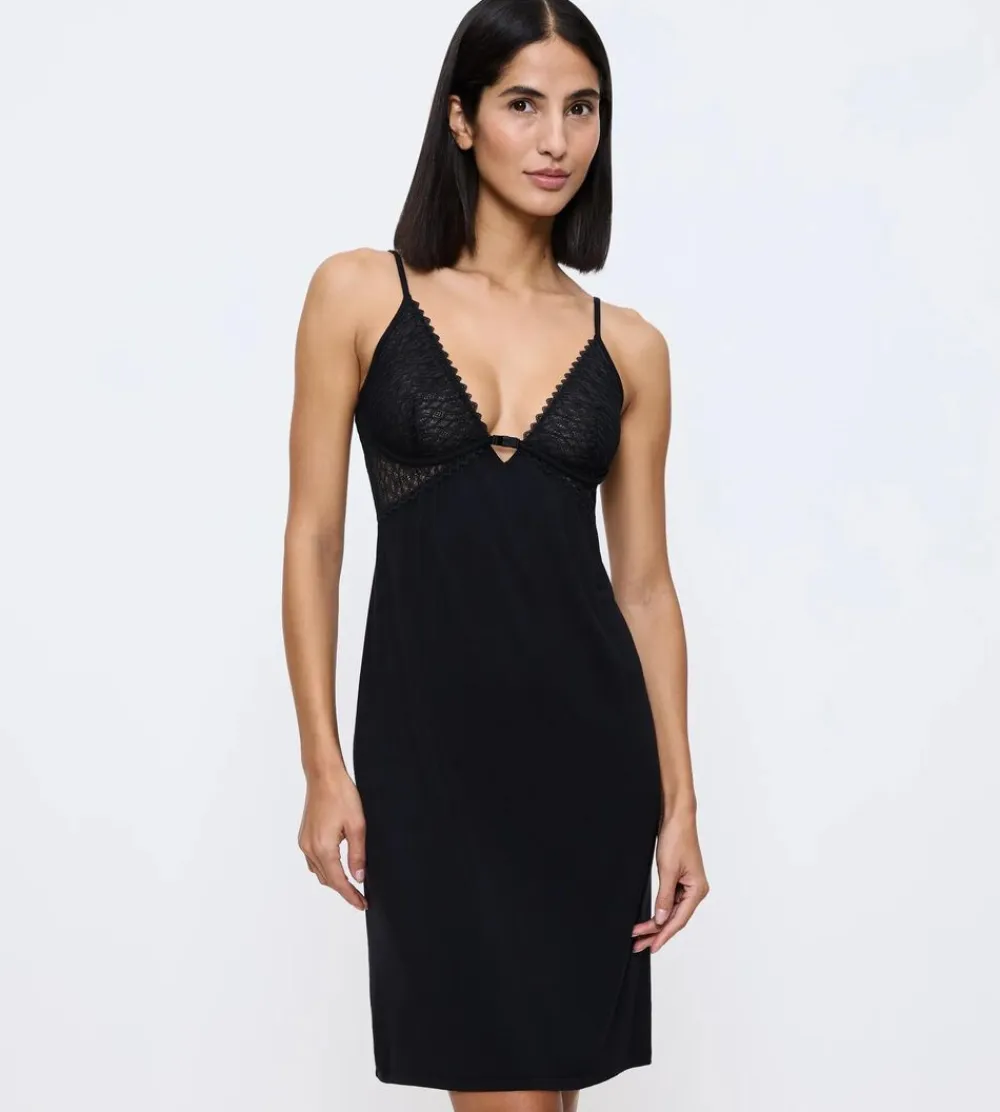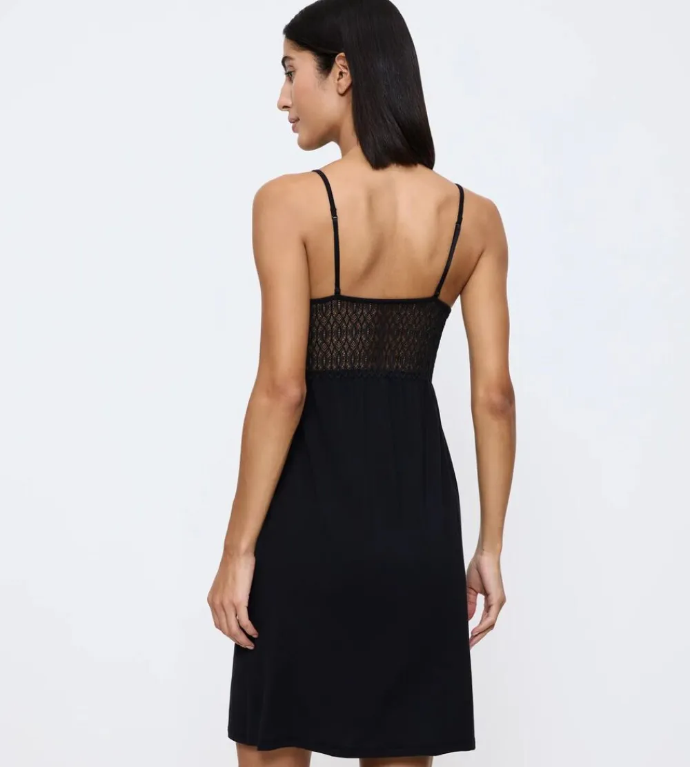 Denne sensuelle, ærmeløse natkjole har en flatterende pasform og er fremstillet af 95 % blødt, elastisk, certificeret Lenzing TENCEL Modal-stof. Blondeelementerne og den flatterende halsudskæring tilføjer et strejf af elegance og giver den perfekte blanding af sensualitet og komfort.