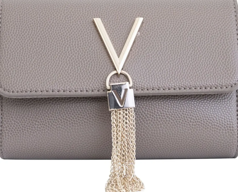 Valentino crossbody-taske ‘Divina’ er dekoreret med den karakteristiske V-plade med kvastspids og er fremstillet af PU-læder med polyesterinteriør. Hovedrummet er rummeligt nok til at passe til din telefon og nøgler, og det har en sidelomme med lynlås til at opbevare dine kort. Bær tasken over skulderen eller crossbodyen ved dens kædestrop