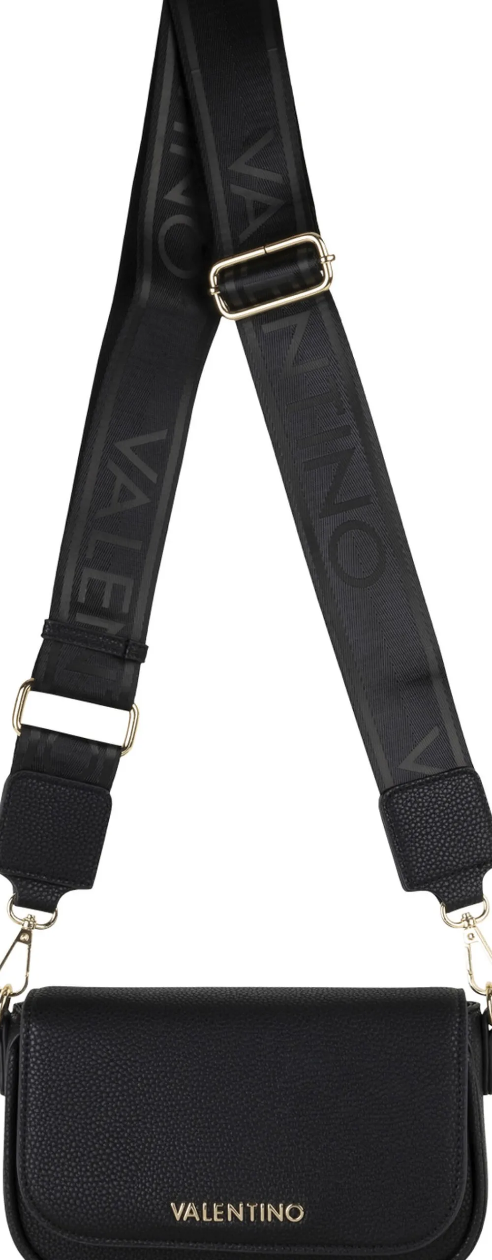 Valentino Miramar skuldertaske har en stilfuld flap, der inkluderer en sikker tryklukning. Når den åbnes, afslører den et rummeligt hovedrum med lynlås samt en praktisk sidelomme for hurtig adgang til dine vigtigste ting. Kanvasremmen, der er prydet med branding, kan justeres i længden. Tasken har elegant guldtonet hardware og en Valentino-logoplade på klappen. Tasken er fremstillet af PU-læder både indvendigt og udvendigt.