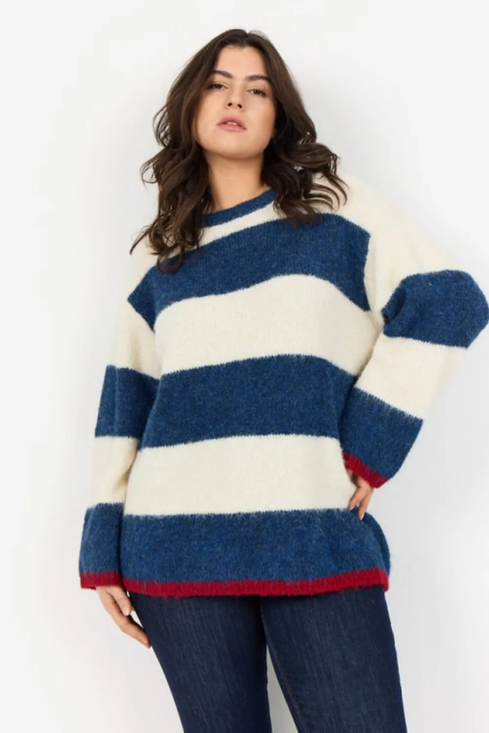 WA-JOLIE 1 Pullover er fremstillet af 59 % genbrugspolyester, 21 % nylon, 11 % polyester, 8 % uld og 1 % elastan. Den har vandrette striber, rund halsudskæring og ribbede manchetter. Brug den sammen med jeans eller over en kjole for et afslappet look.