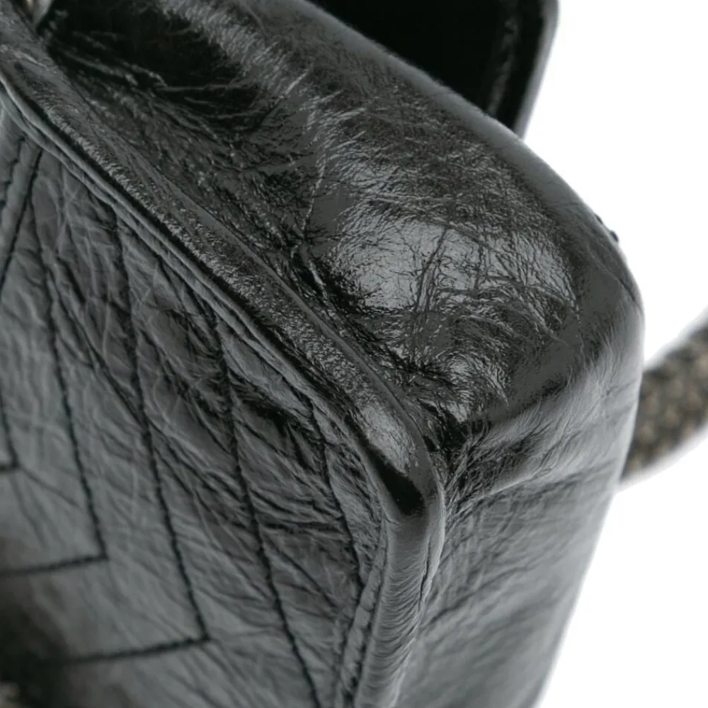 The Niki Airpods Case features a quilted and crinkled leather body, a curb chain strap, and a front flap. It carries a B+ condition rating. Exterior Bottom Creased. Lock Scratched. Exterior Corners Worn. Exterior Front Creased. Interior Lining Creased. Practical Attachment Scratched. Exterior Side Creased.
