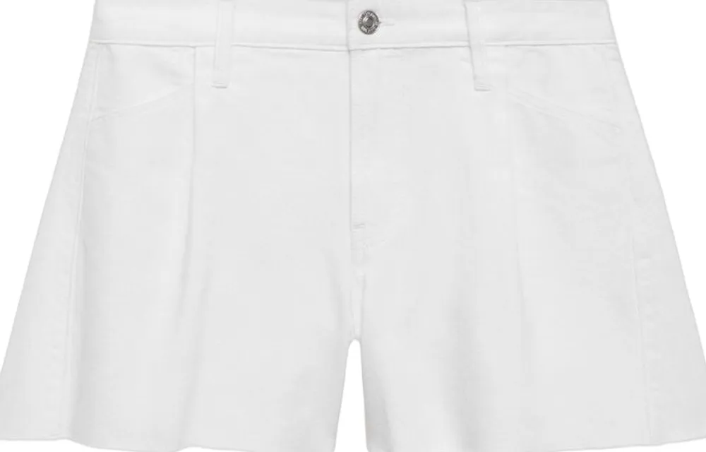 Denim-stil bomuldsstof, kort Design, mellemhøj talje, bæltestropper, jeans med bindelukning, lægdetaljer foran, flosset kant, knap- og lynlåslukning.