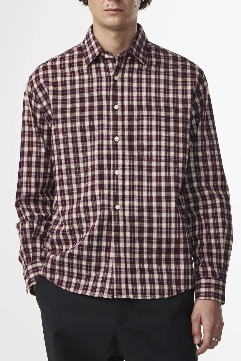 Button-up skjorte i blød bomuld og vævet i flannel twillvævning. Designet med en Single påsyet lomme og afrundet kant