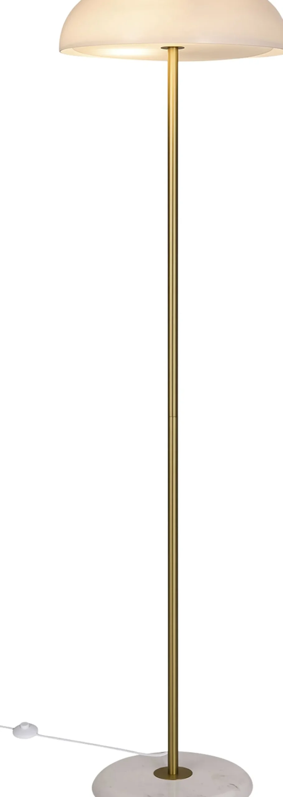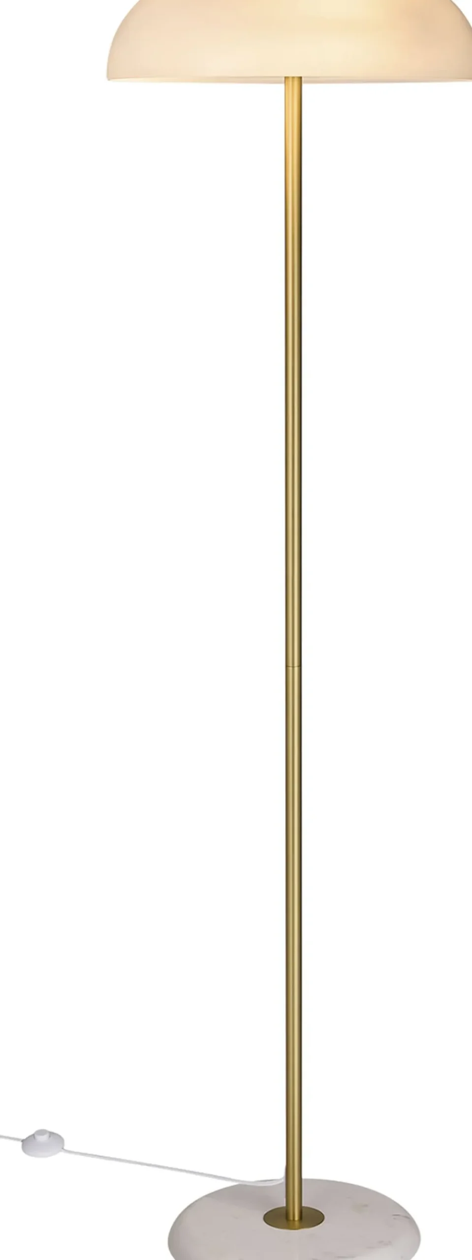 Glossy er indbegrebet af smagfuldt og sofistikeret design. Den danske designer Maria Berntsen har skabt en gulvlampe, der oser af nordisk minimalisme, og hvor kombinationen af de eksklusive materialer, marmor, børstet messing og opalhvidt glas bidrager til et utroligt elegant design. Glossy er opkaldt efter den skinnende overflade på det opalhvide glas, som lader et blødt og behageligt lys skinne igennem skærmen.