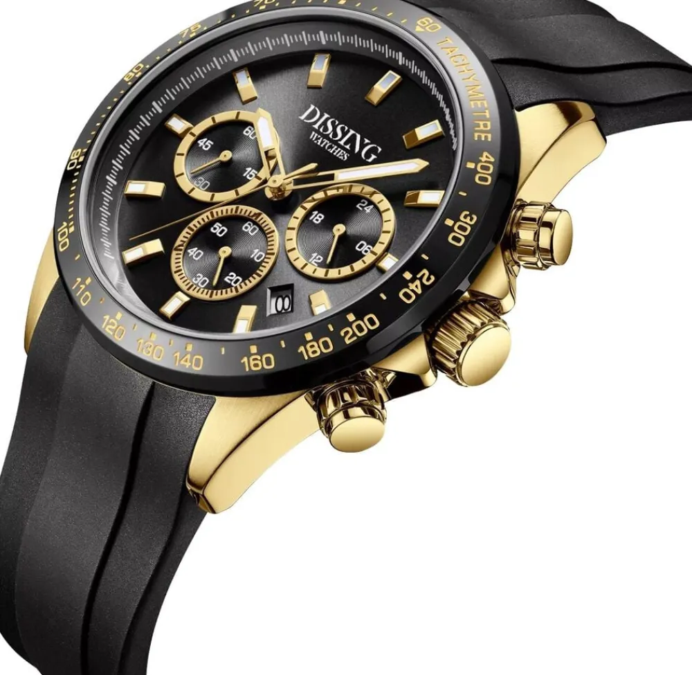 Designet til alsidighed, Dissing MK9 D1155 er vandtæt op til 10 ATM, hvilket gør det egnet til svømning. Den sorte gummirem komplementerer den sorte og gyldne farve, og giver komfort og en sikker pasform med sit spænde. Viserne er udstyret med Luminova, så de lyser i mørket for nem tidsvisning under dårlige lysforhold. Derudover leveres dette ur med en ekstra rem, der giver mulighed for at ændre din stil. Urkassen er lavet af 316L kirurgisk stål, og det safirbelagte mineralglas giver ridsemodstand, hvilket gør det til et holdbart valg til daglig brug.