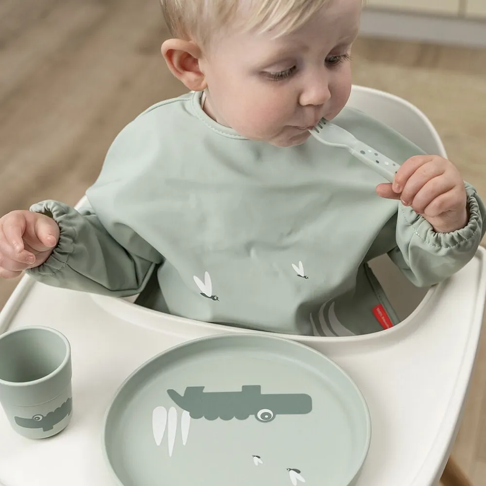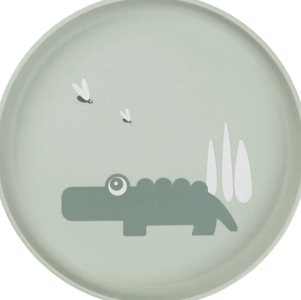 Servér dit barns mad på den søde og praktiske Foodie tallerken og lad det legende print bringe glæde til måltidet. Den høje kant hjælper barnet med at fange maden, mens den praktiske, skridsikre bund sørger for, at tallerkenen bliver, hvor den skal. Tallerkenen er designet til hverdagslivet med børn og tåler både opvaskemaskine og mikroovn. Efter utallige familiemiddage og børnefester kan tallerkenen affaldssorteres som plast og genanvendes til produktion af nye hverdagsprodukter. Den grønne tallerken er dekoreret med et legende motiv af den kærlige krokodille Croco, der beundrer et par ildfluer. Bundens mørkegrønne farve tilføjer en fin, tofarvet detalje.