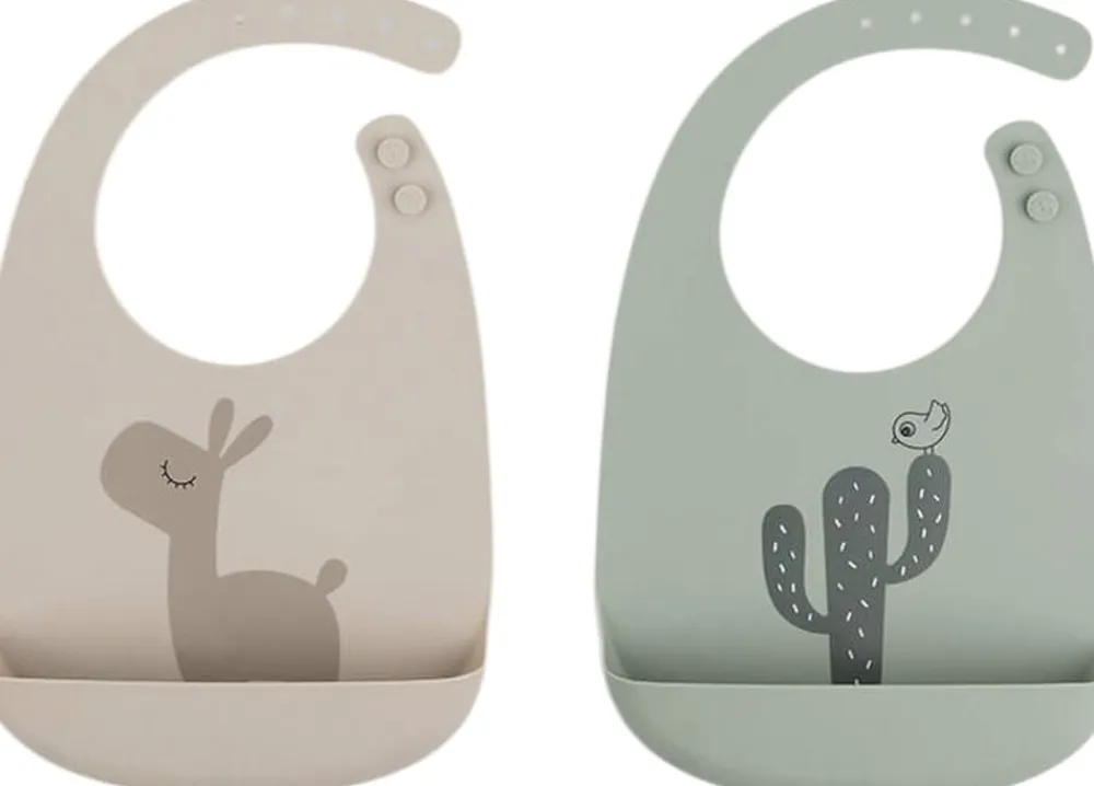 Din Deer friend holder øje med det mad, der ikke rammer munden. Dette sæt med to praktiske silikone hagesmække gør spisetid lidt mindre oprydningskrævende. De to hagesmække er vandtætte og vil holde dit barn tørt, når det øver sig i at drikke selv. Den store, stabile lomme fanger den mad, der ryger ved siden af, og sparer dig for en masse rengøringstid. Hagesmækkene er bløde og behagelige for de små at have på og har en justérbar lukning med to knapper. De fine hagesmække er dekoreret med Lalee og en kaktus. Silikonehagesmækkene er nemme at tørre af med en klud eller rengøre i opvaskemaskinen.