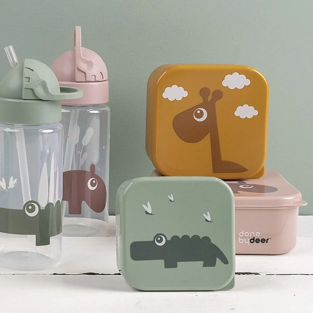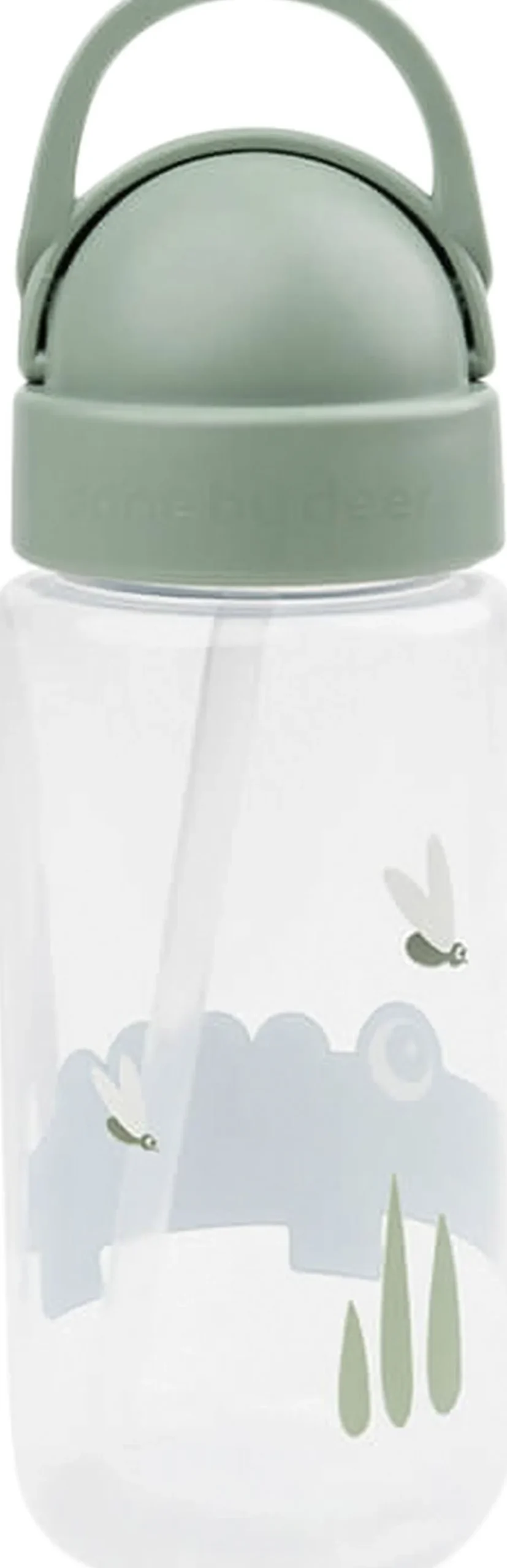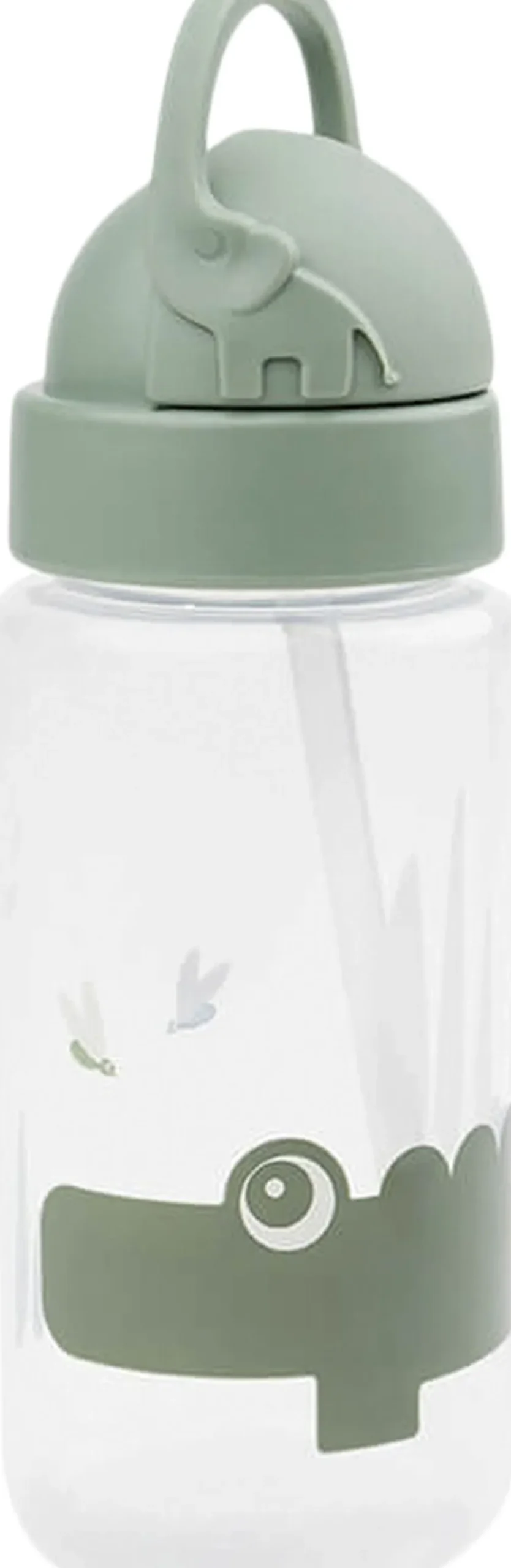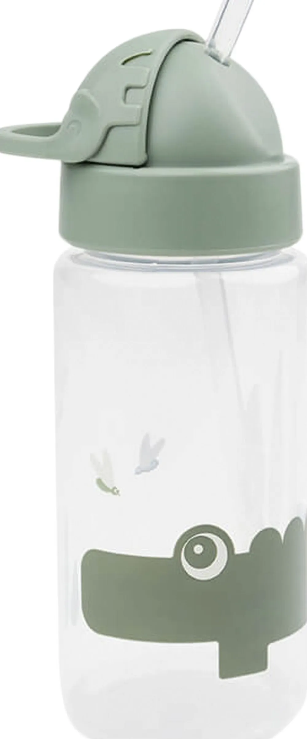 Den søde drikkedunk med sugerør passer perfekt i ungernes rygsæk. Drikkeflasken har et smart sugerør, der kan gemmes i låget og forhindrer at væske spildes. Håndtaget hjælper de små hænder til at finde sugerøret frem igen. Den spildfrie drikkeflaske er uundværlig på farten og gør det sjovt for barnet at drikke masser af vand. Et ekstra sugerør og mundstykke er inkluderet. Croco og ildfluer pryder denne vandflaske til børn og er i skønne, grønne toner.