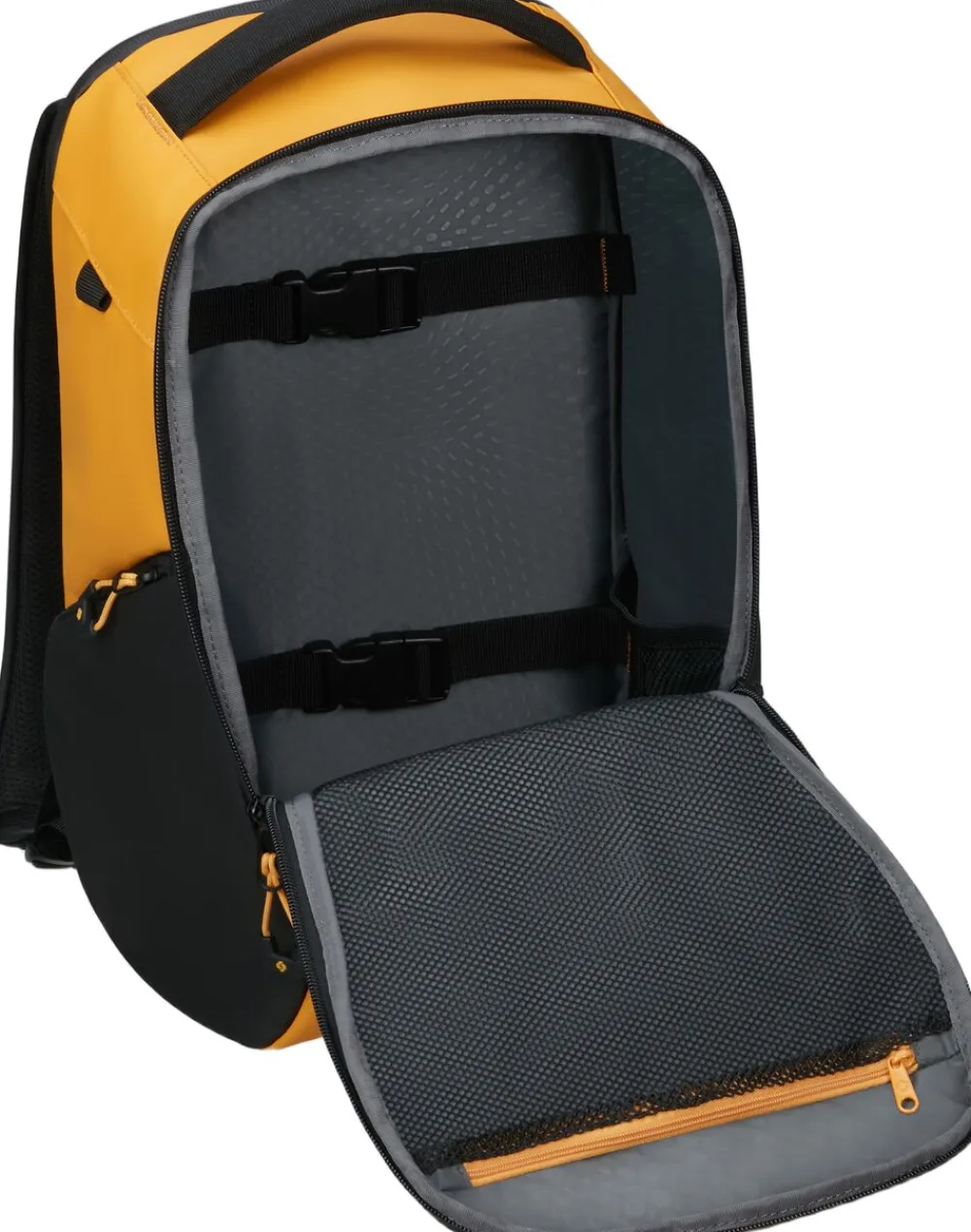 Rygsæk hvor både det udvendige og indvendige stof er lavet af genbrugt nylon og polyester, vandafvisende materiale, passer perfekt til Ryan Air kabine mål 25x40x20 cm. frontlomme med refleksdetaljer, ergonomiske stropper, brystrem, plads til 14″” pc og 10,5″” tablet, rumindhold 19 liter, vægt 0,8 kg.